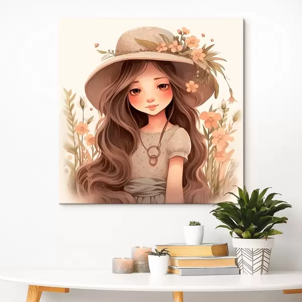 Paveikslas Mergaitė su skrybėle ir gėlėmis Nr s41504