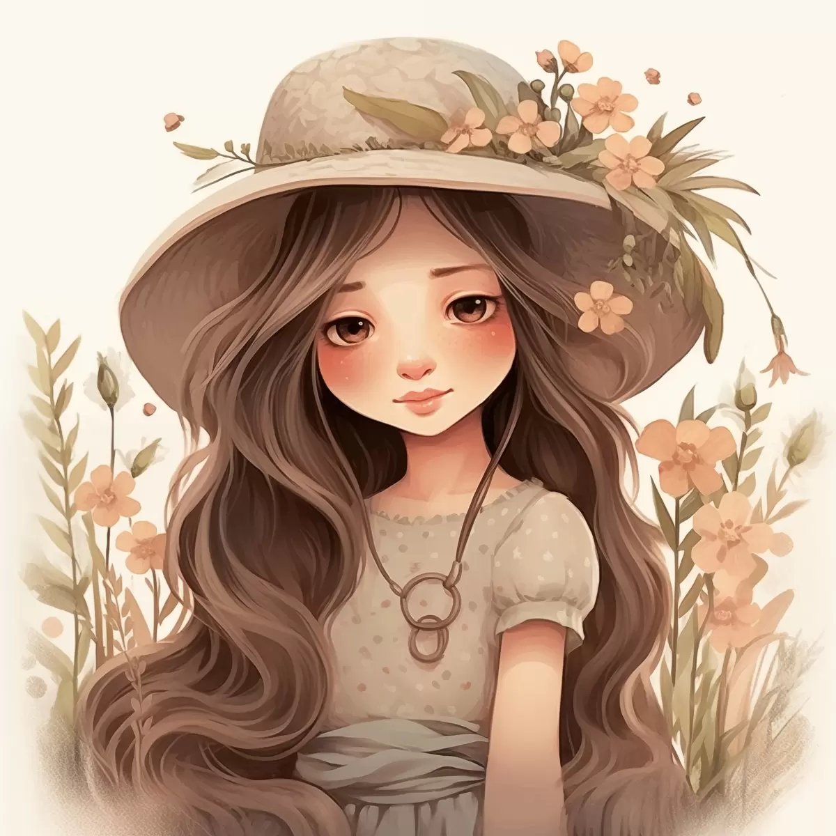 Paveikslas Mergaitė su skrybėle ir gėlėmis Nr s41504