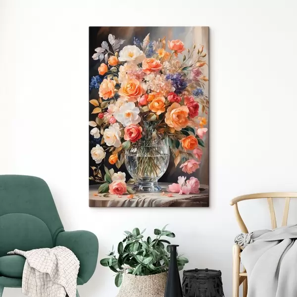 Paveikslas Gėlių puokštė skaidrioje vazoje Nr s41509