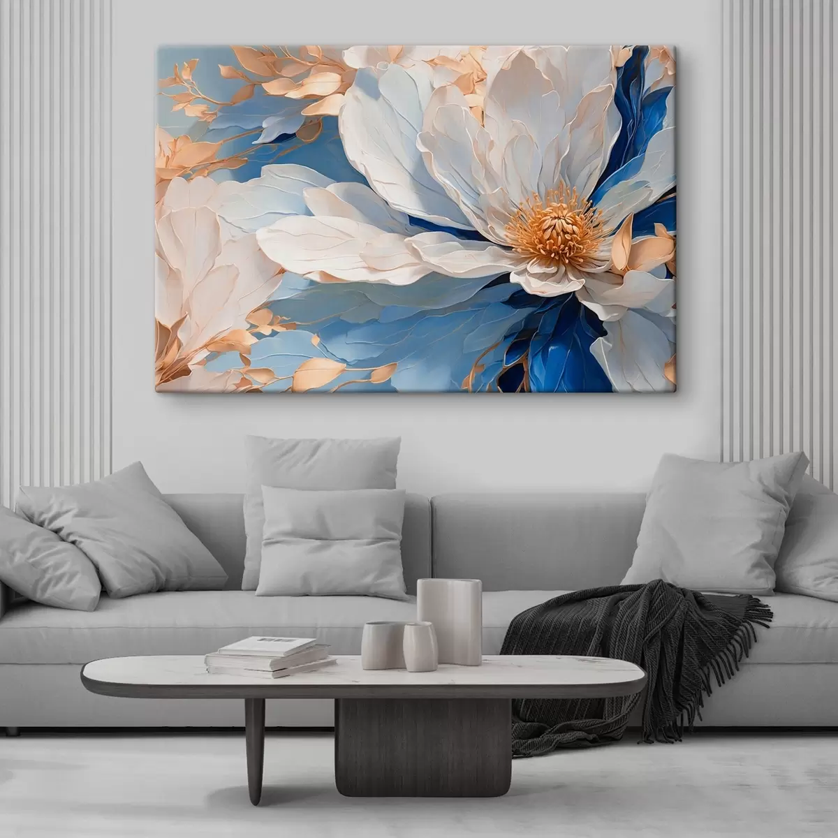 Paveikslas Gėlė su baltais ir mėlynais žiedlapiais stambiu planu Nr s41512