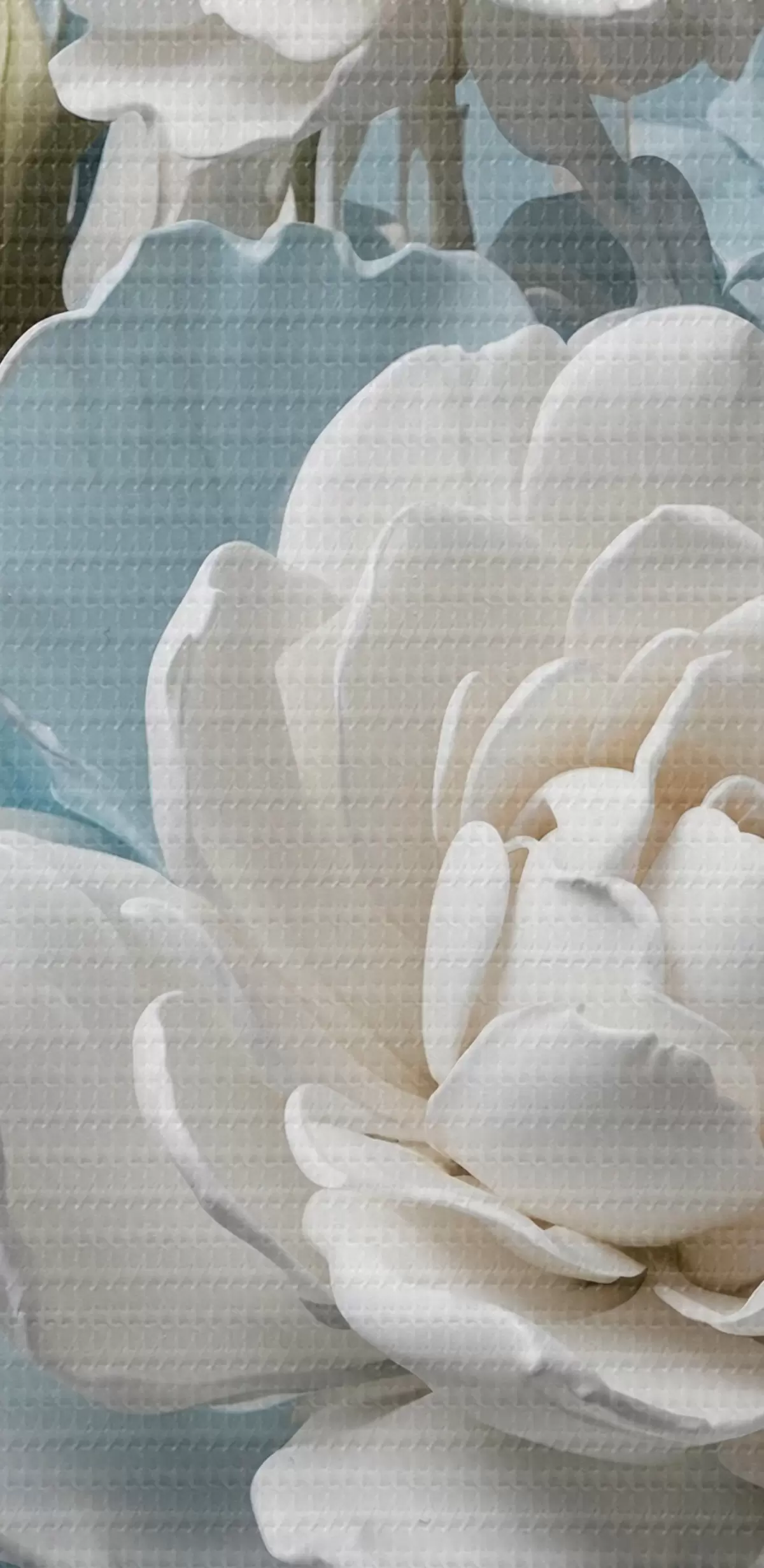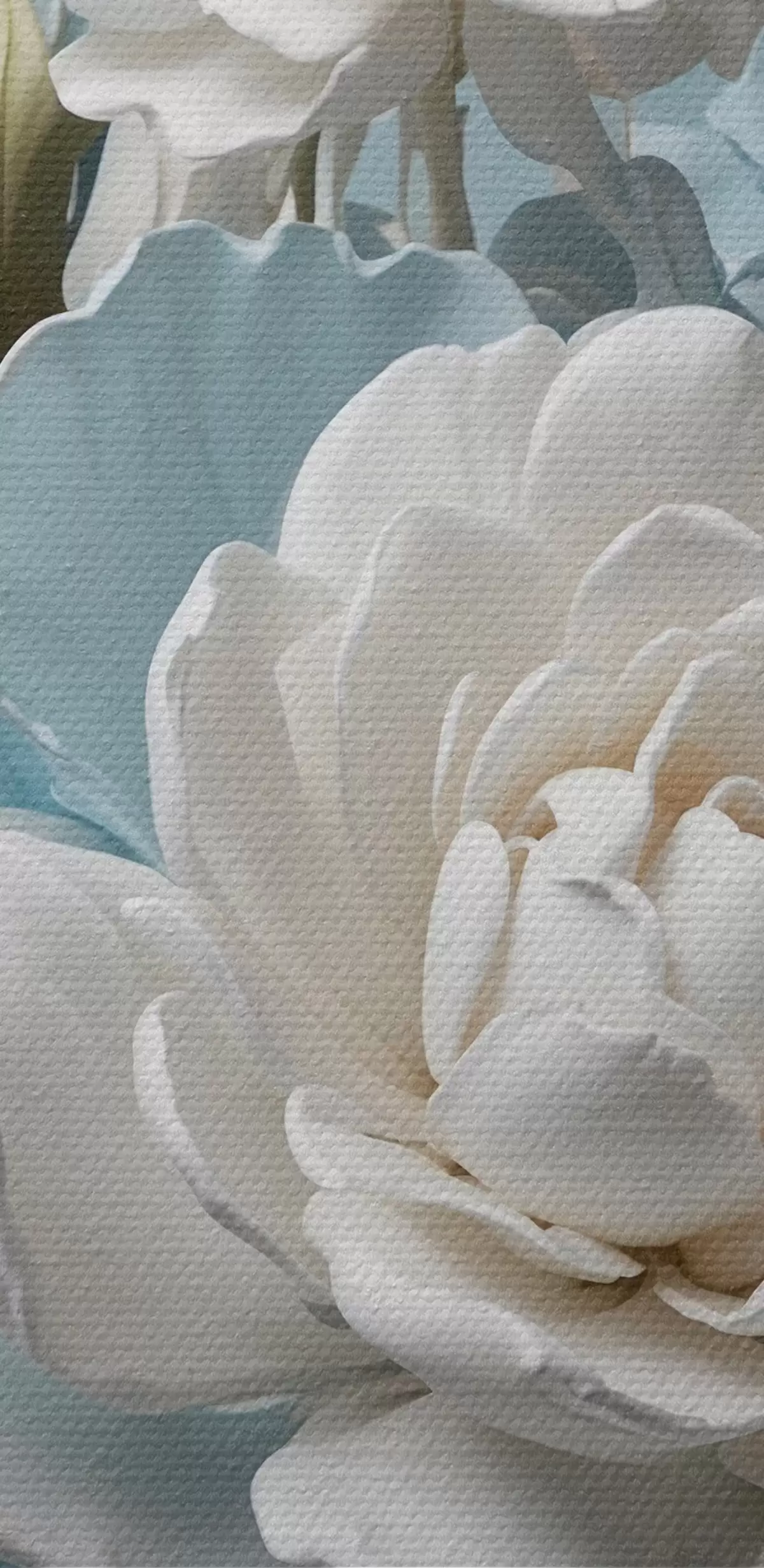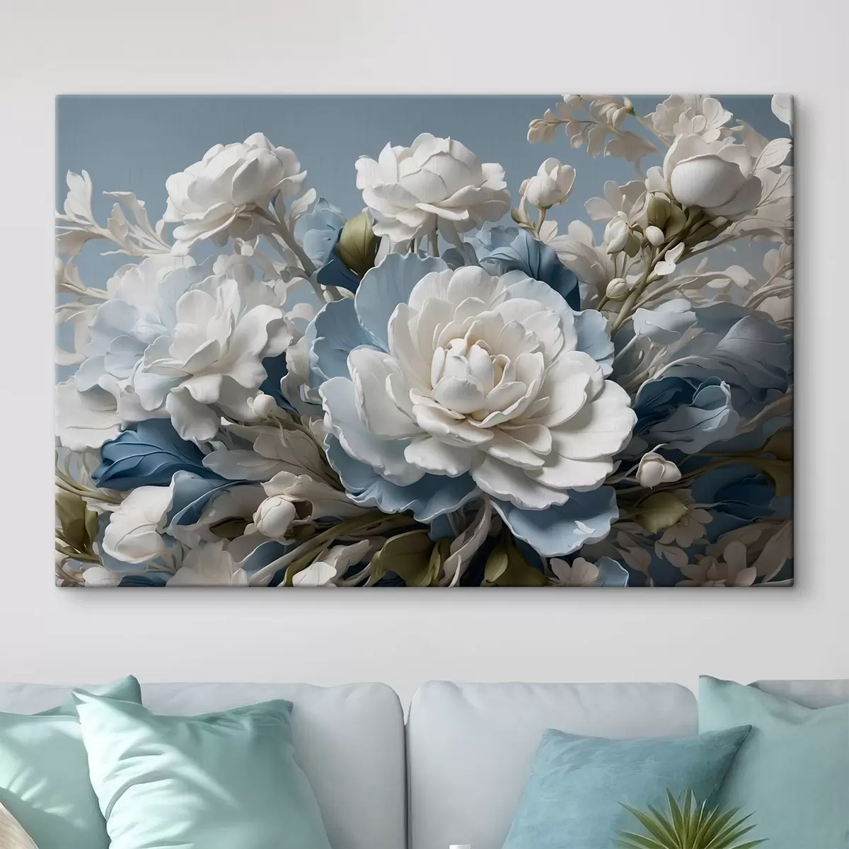 Paveikslas Baltos gėlės ir lapai mėlyname fone Nr s41527