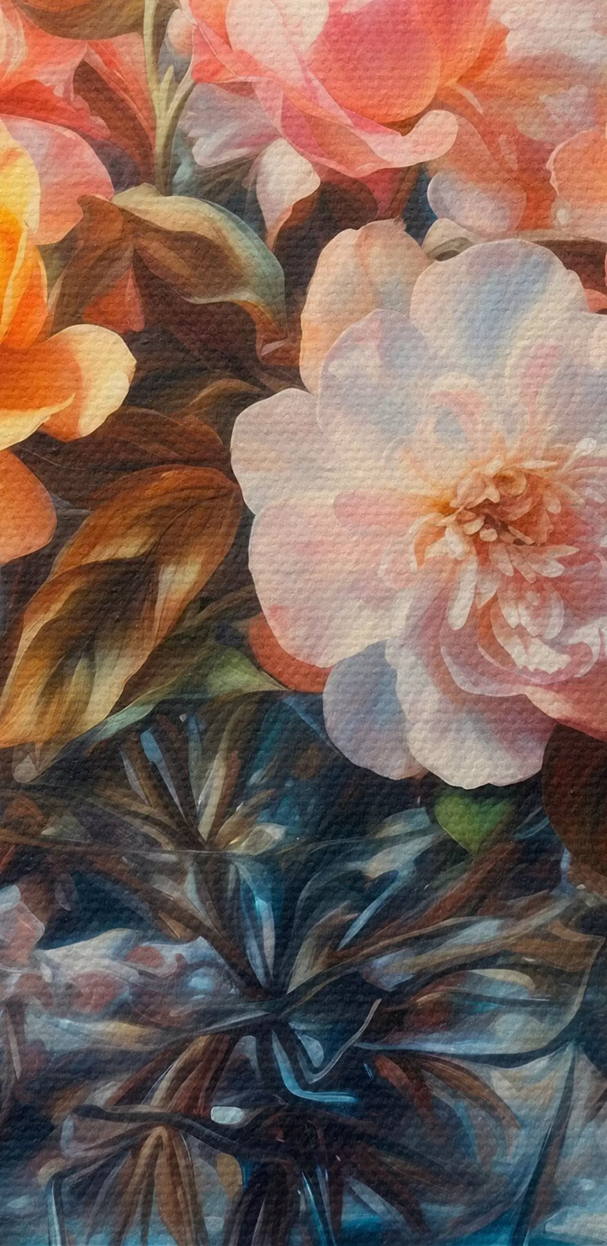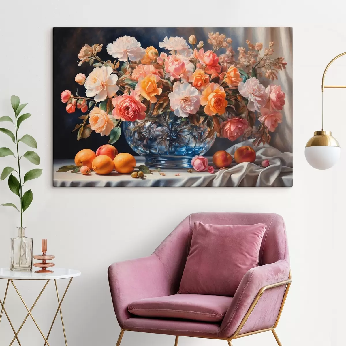 Paveikslas Gėlių puokštė permatomoje vazoje ant stalo Nr s41533