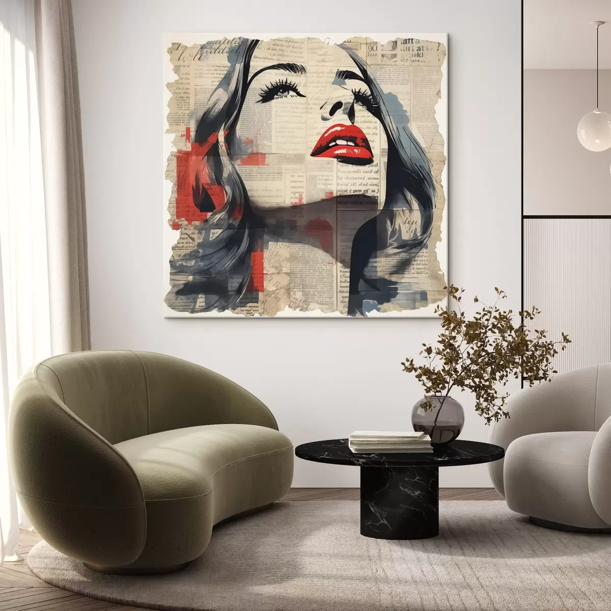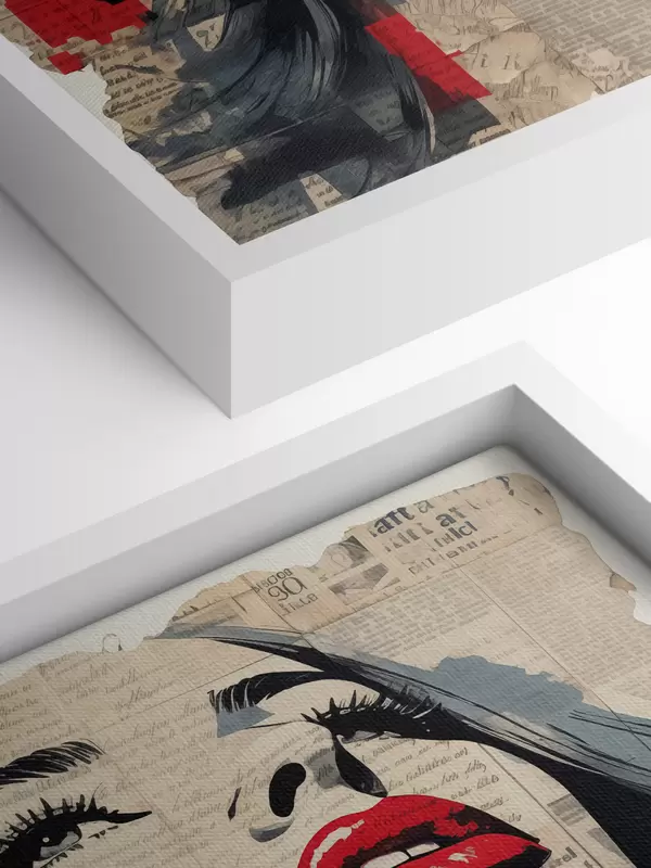 Paveikslas Mergaitės portretas ant seno laikraščio koliažo stiliumi Nr s41619