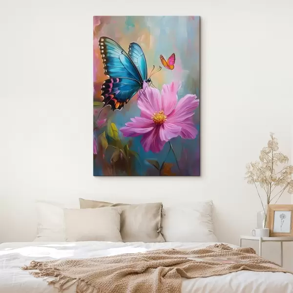 Paveikslas drugelis ir didelė rožinė gėlė Nr s41620