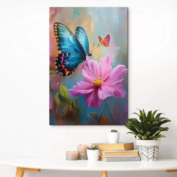 Paveikslas drugelis ir didelė rožinė gėlė Nr s41620