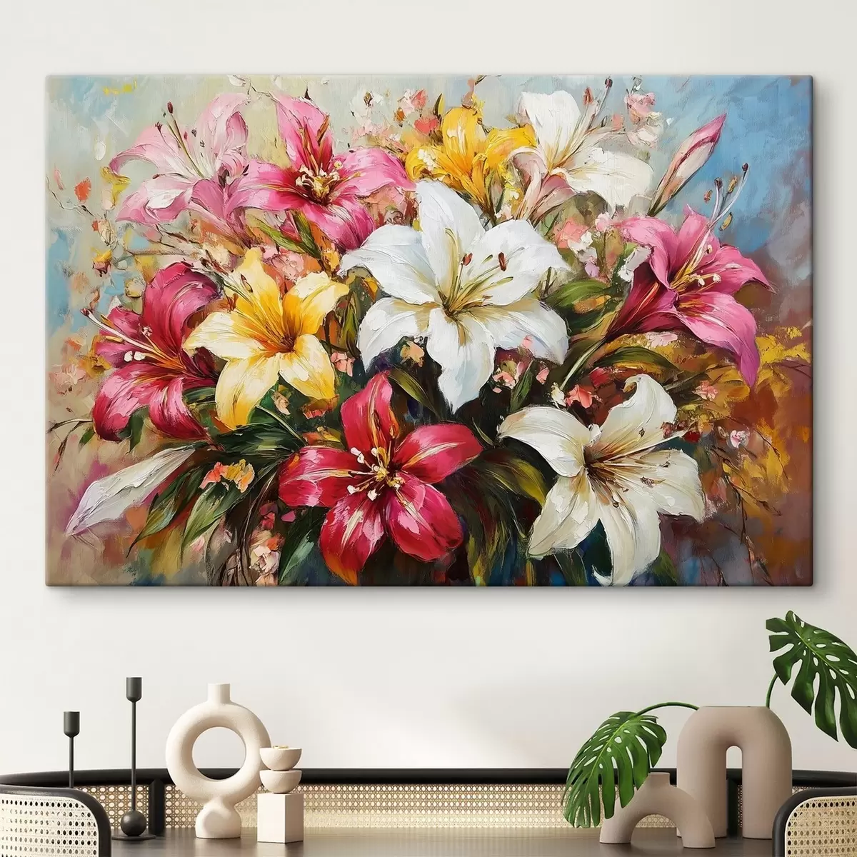 Paveikslas spalvingų lelijų puokštė Nr s41634