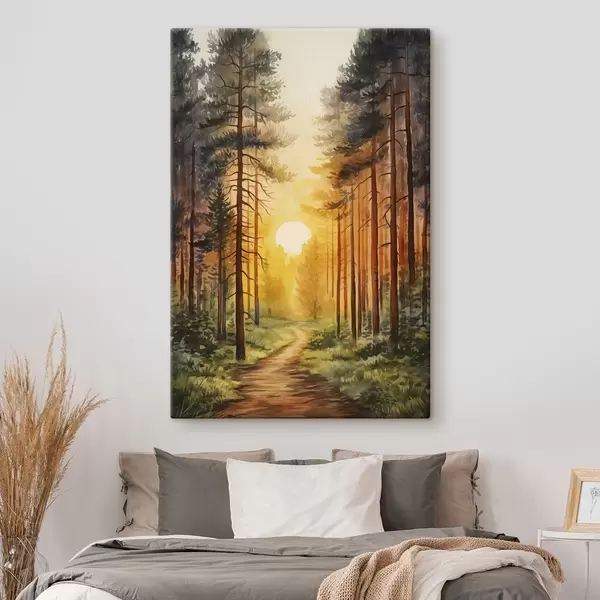 Paveikslas Saulėlydis pušyne, akvarelė, gamtos grožis Nr s41638