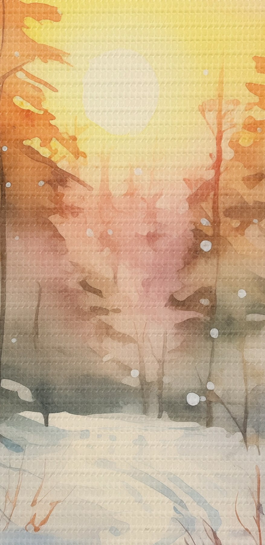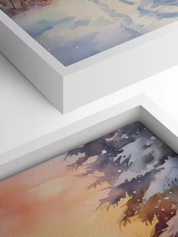 Paveikslas Akvarelė žiemos miškas, snaigės, gražus dangus, saulėlydis Nr s41640