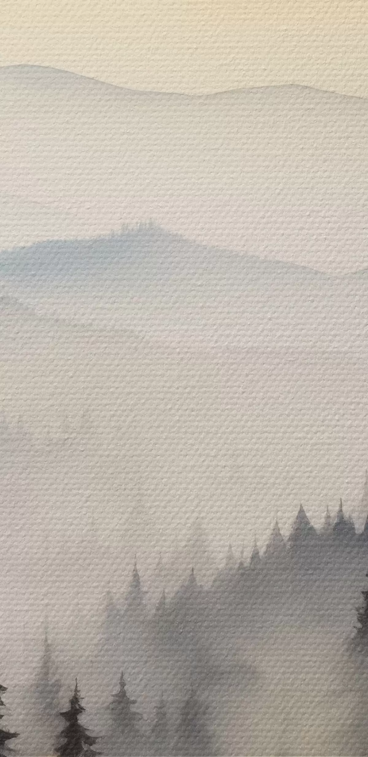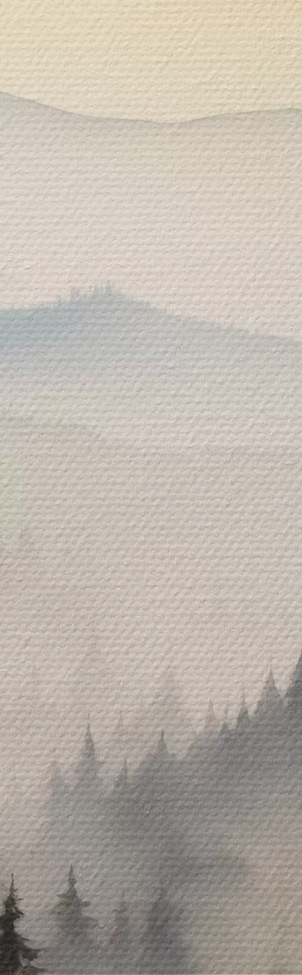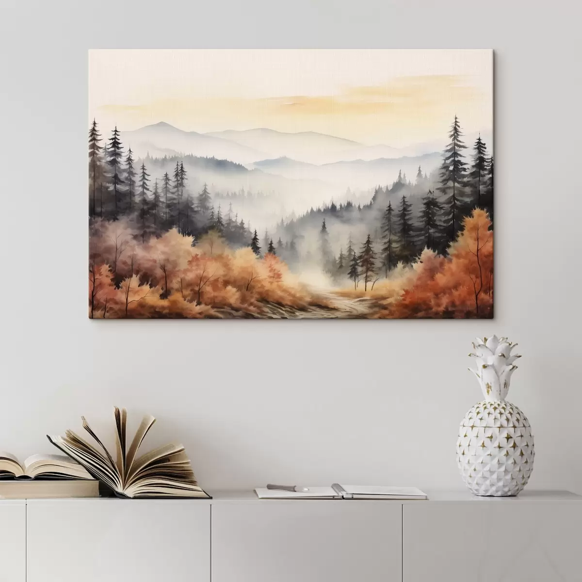 Paveikslas Gražūs rūke paskendę kalnai, rudens miškas, akvarelė Nr s41646
