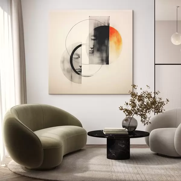 Paveikslas Geometrinė kompozicija su nusidėvėjimo efektu ir abstrakčiais veidais Nr s41697