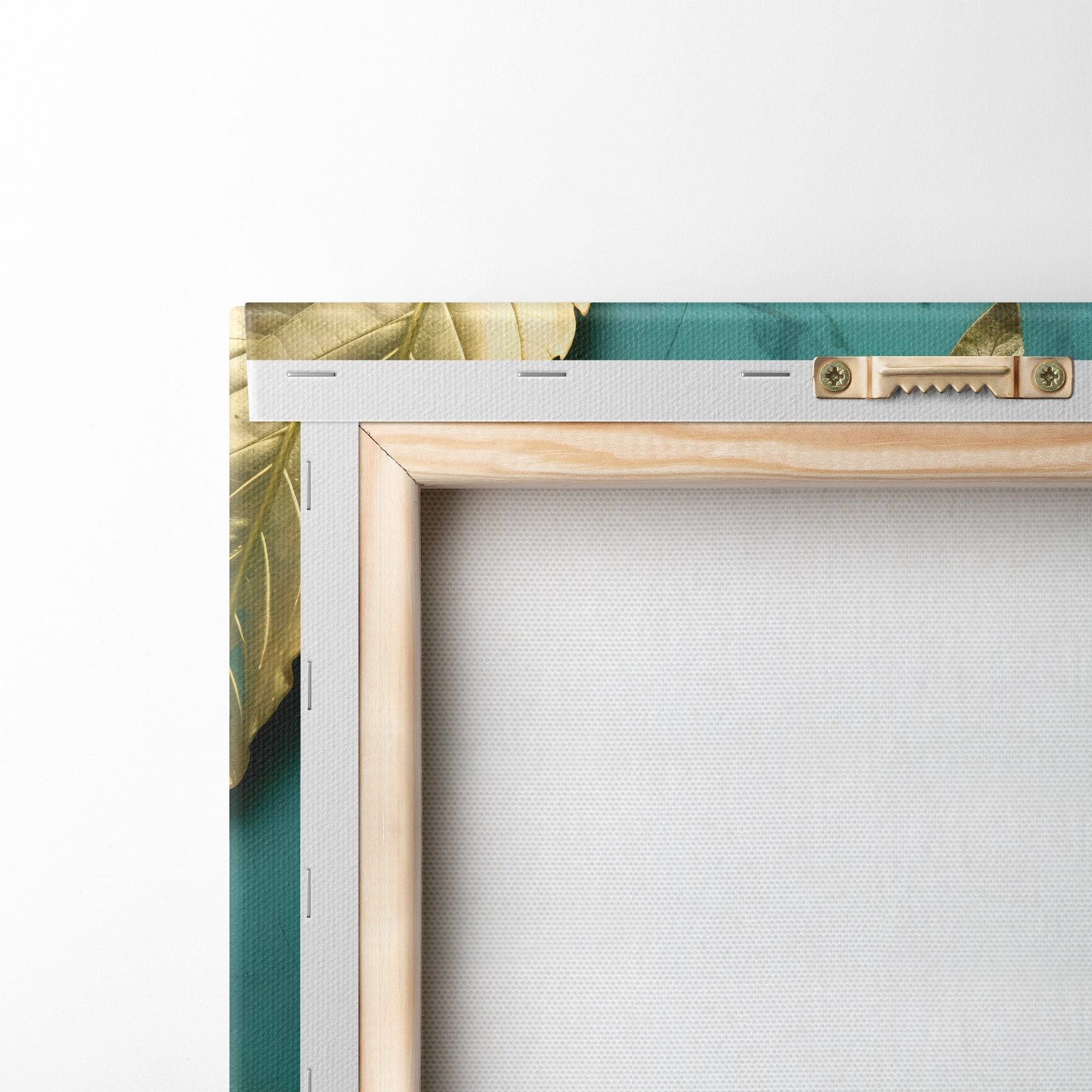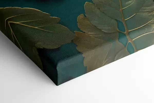 Paveikslas Geltoni subtilūs lapai ant arbatinės spalvos fono, sukuriantys elegantišką botaninį atspaudą Nr s41727