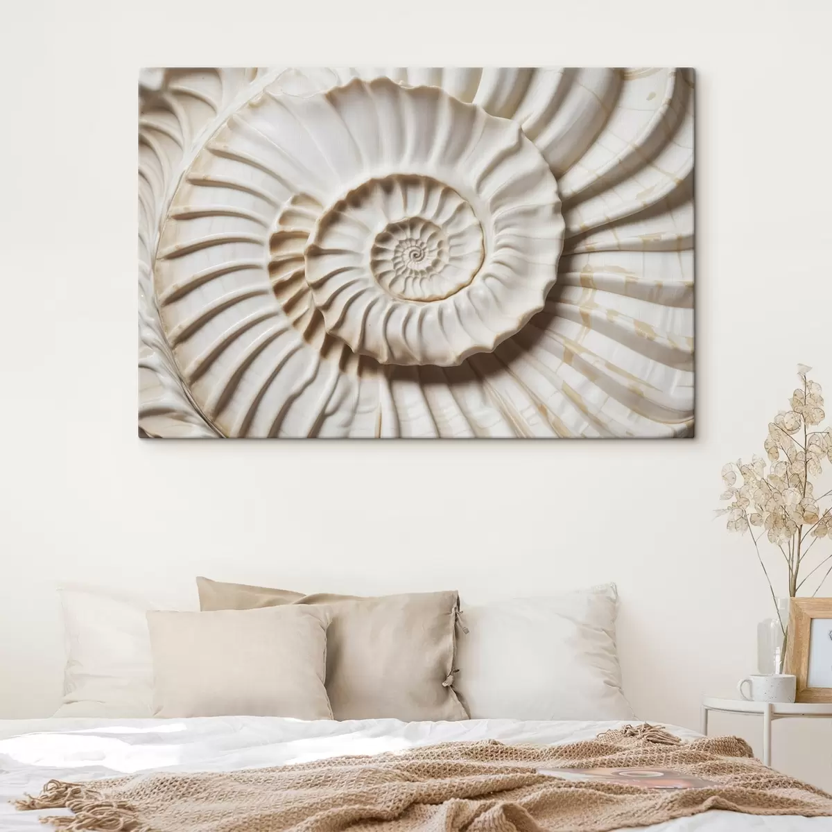 Paveikslas Balta spiralinė kriauklė, išryškinanti sudėtingą ir detalų raštą Nr s41728