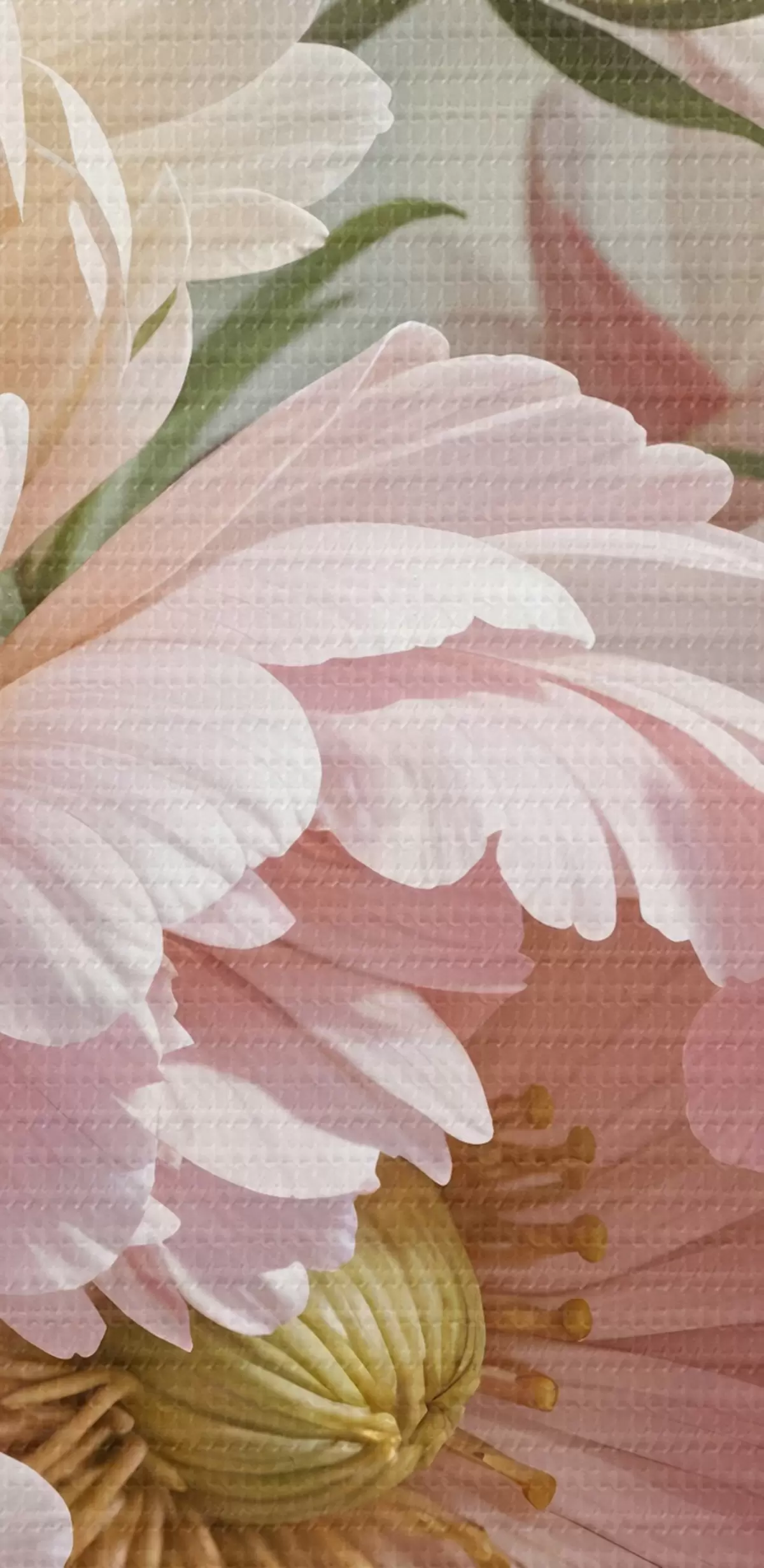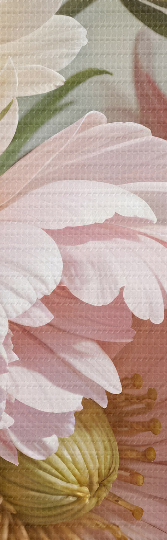 Paveikslas Keli dideli, vešlūs bijūnų žiedai švelniais rausvais ir baltais žiedlapiais Nr s41729