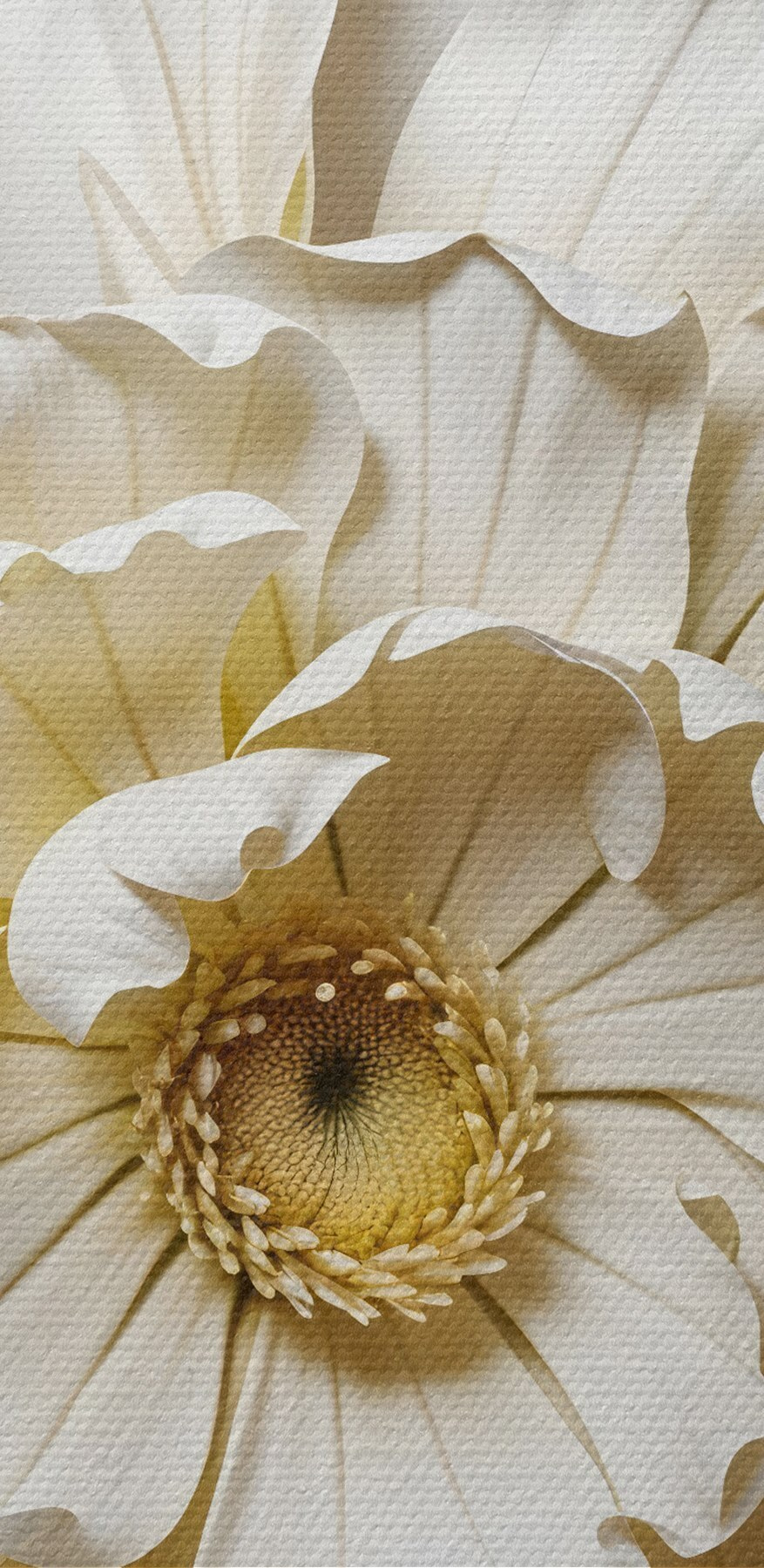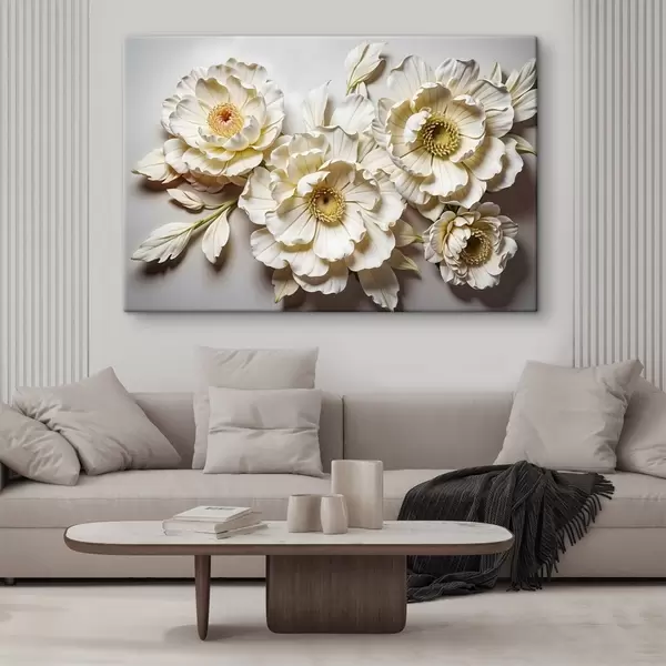 Paveikslas Elegantiškos baltos ir geltonos gėlės su sudėtingomis detalėmis vienspalviame fone Nr s41731