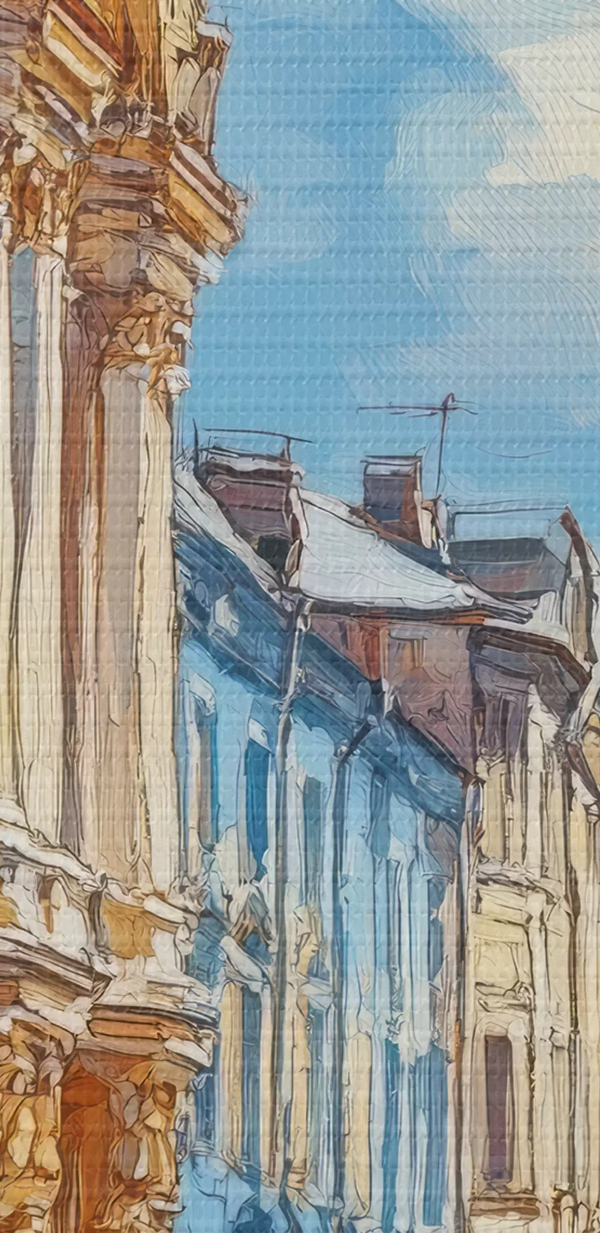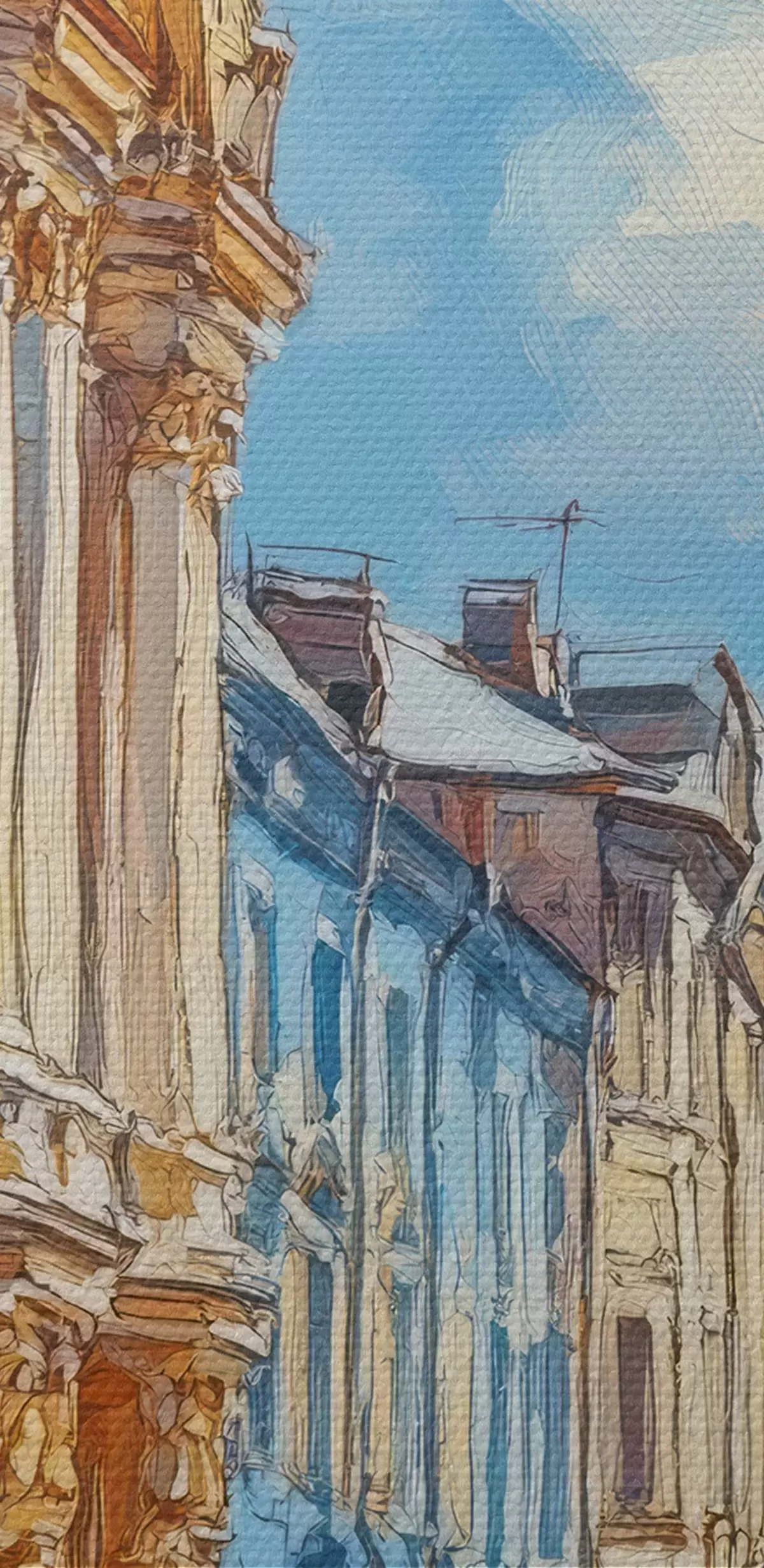 Paveikslas Miesto gatvė saulėtą dieną, aliejinių dažų stiliumi Nr s41751