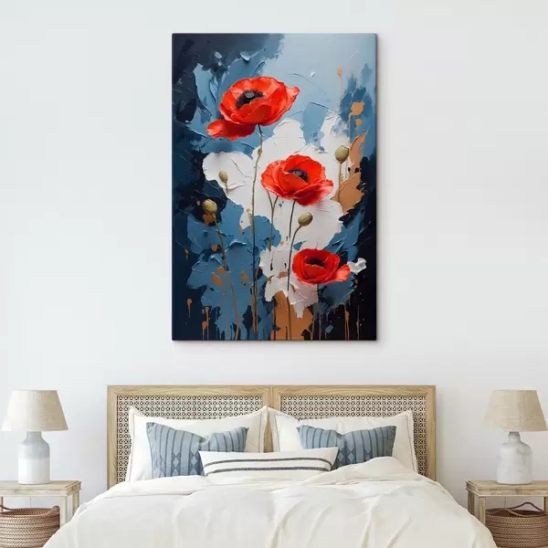 Paveikslas Aguonos abstrakčiame įvairiaspalviame fone aliejinės tapybos stiliumi Nr s41765