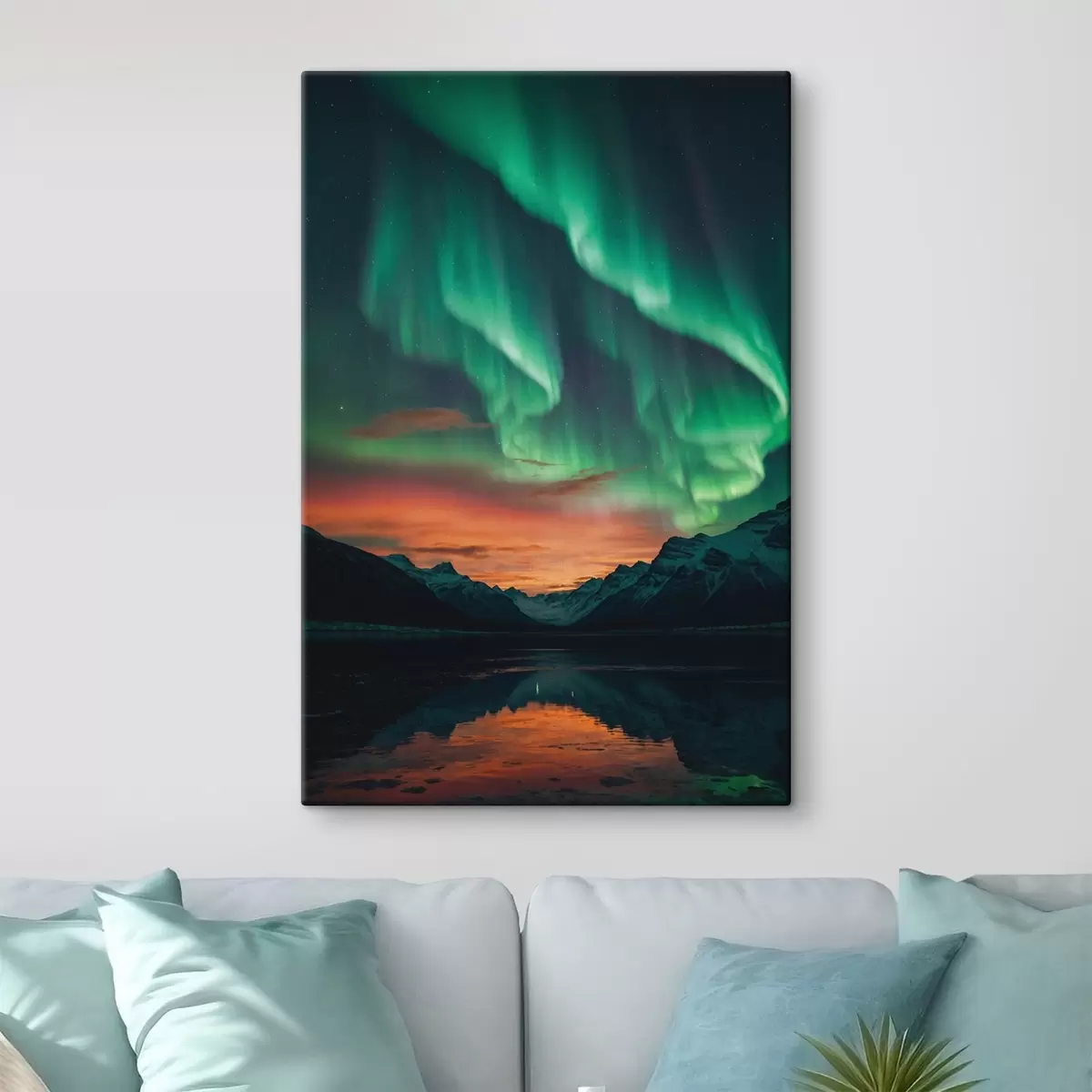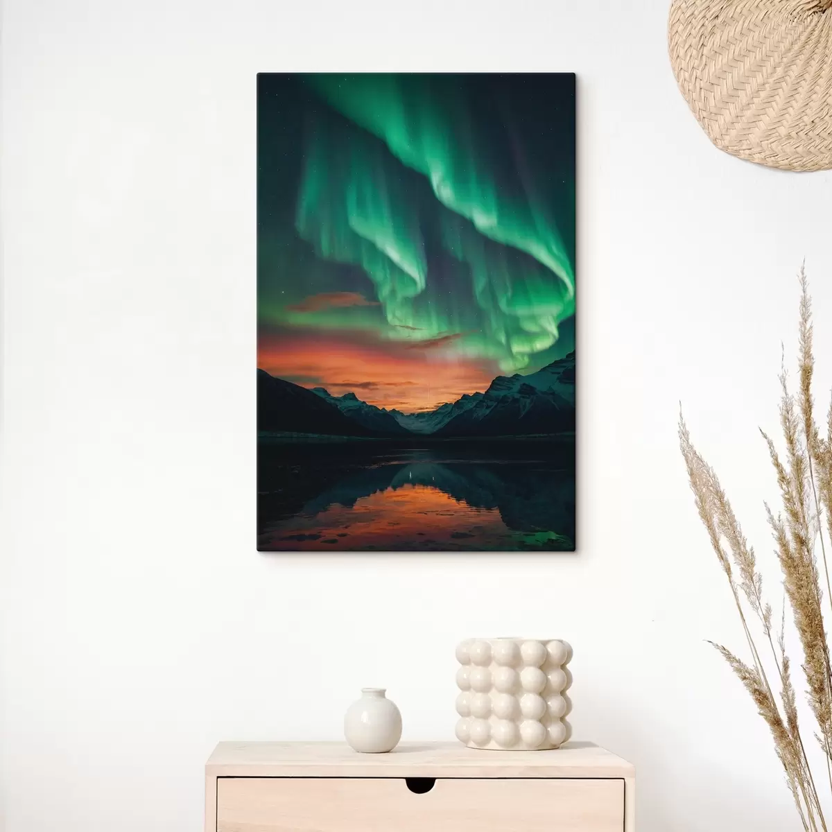 Paveikslas Šiaurės pašvaistė virš kalnų Nr s41783
