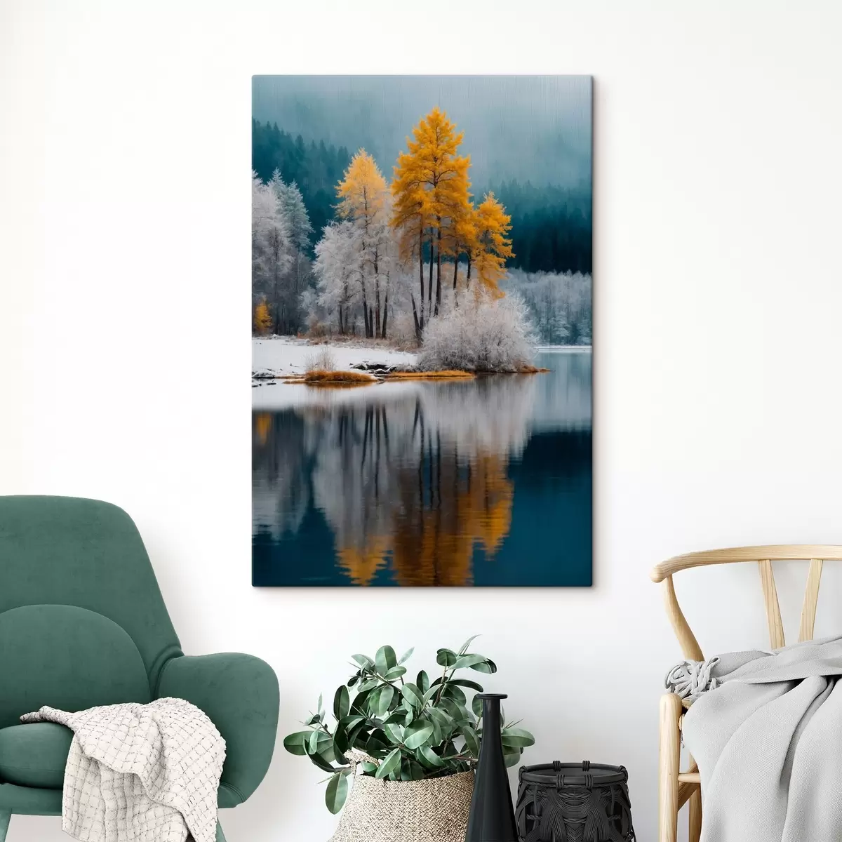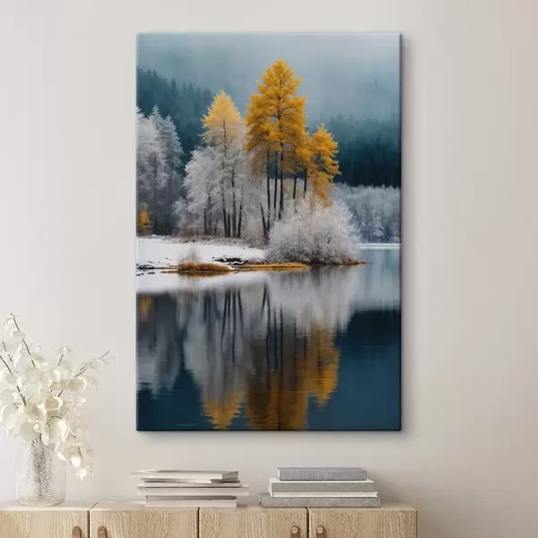 Paveikslas Žiemos miškas ir ežeras Nr s41785