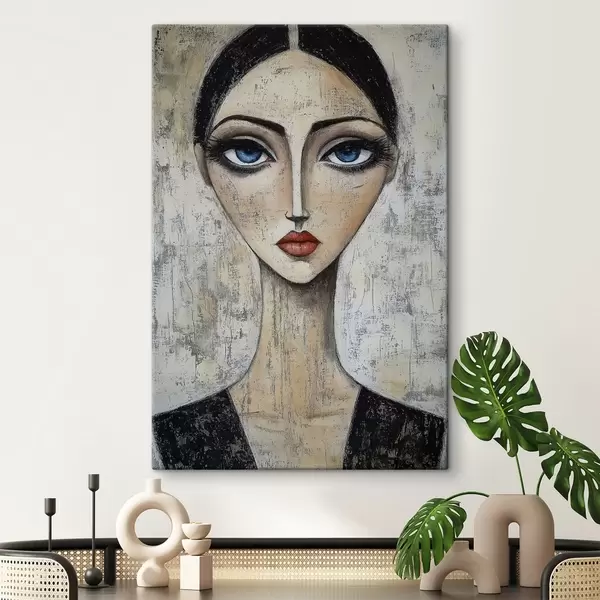 Paveikslas Stilizuota technika atliktas moters portretas su išraiškingomis akimis Nr s41811