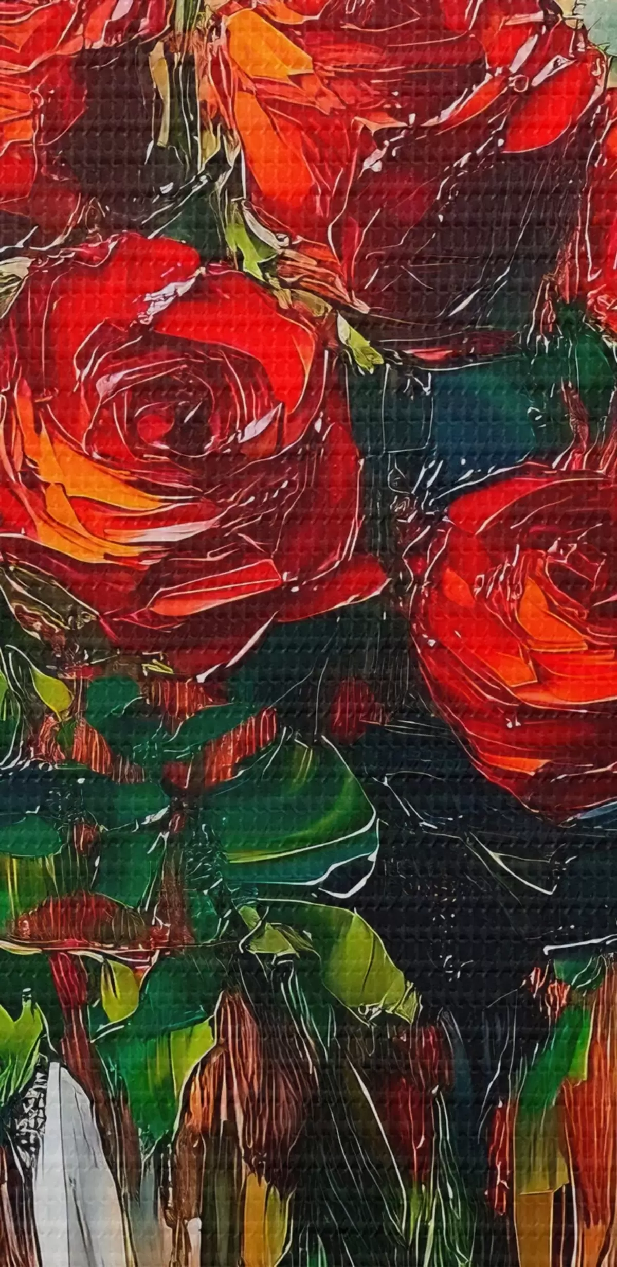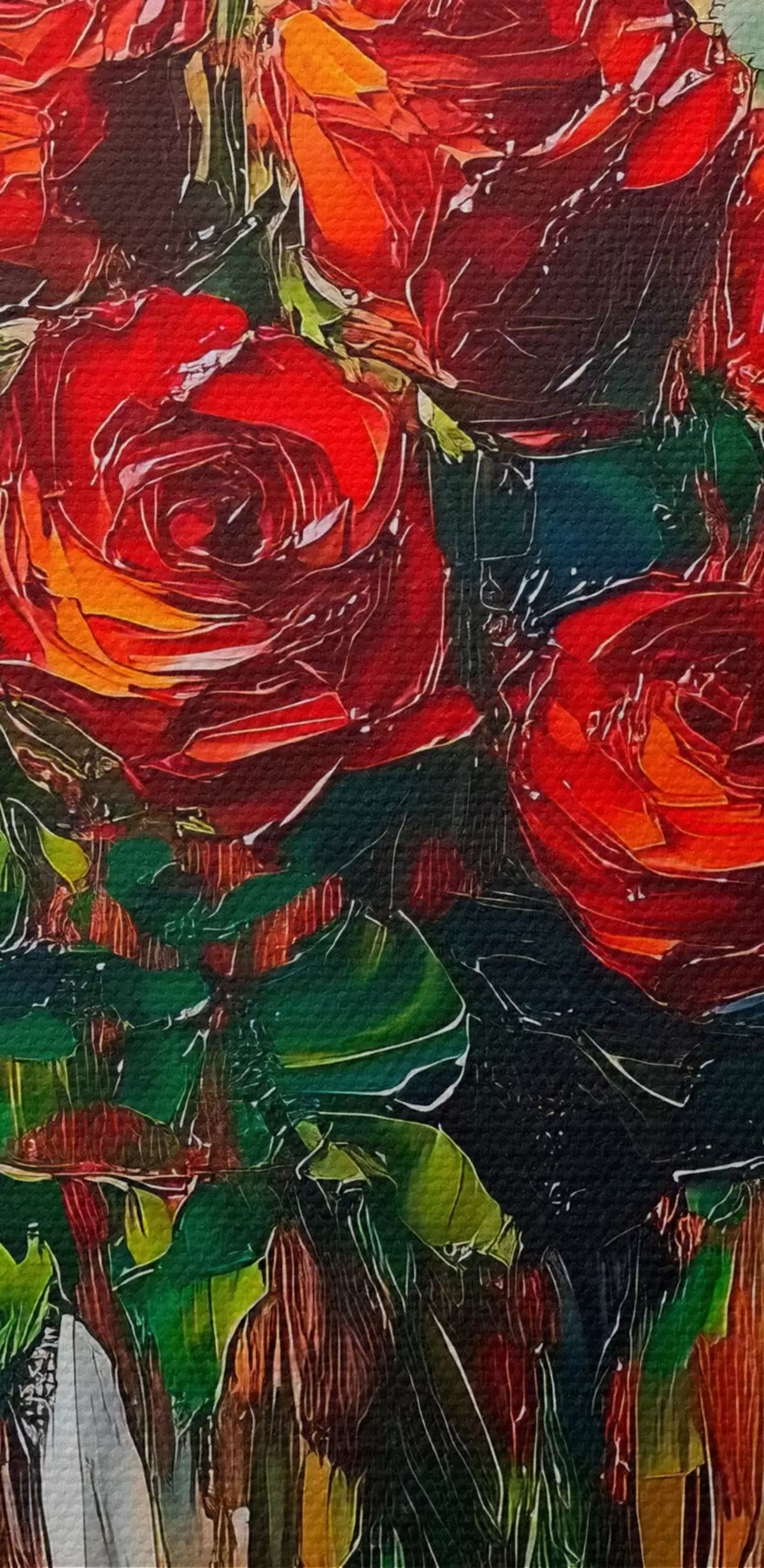 Paveikslas Raudonos rožės skaidrioje vazoje šiltame fone Nr s41816