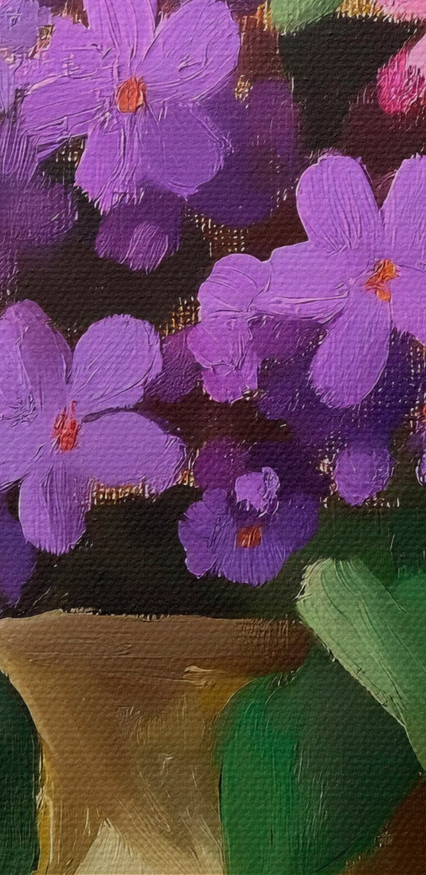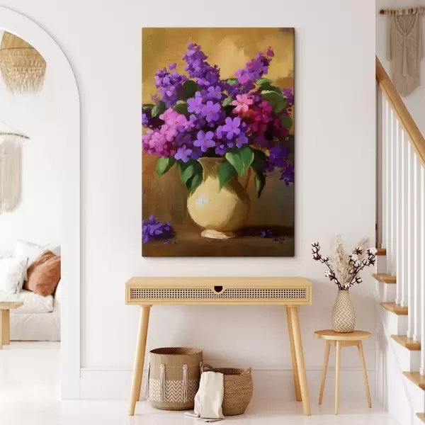 Paveikslas Violetiniai-rožiniai žiedai geltoname ąsotyje Nr s41822