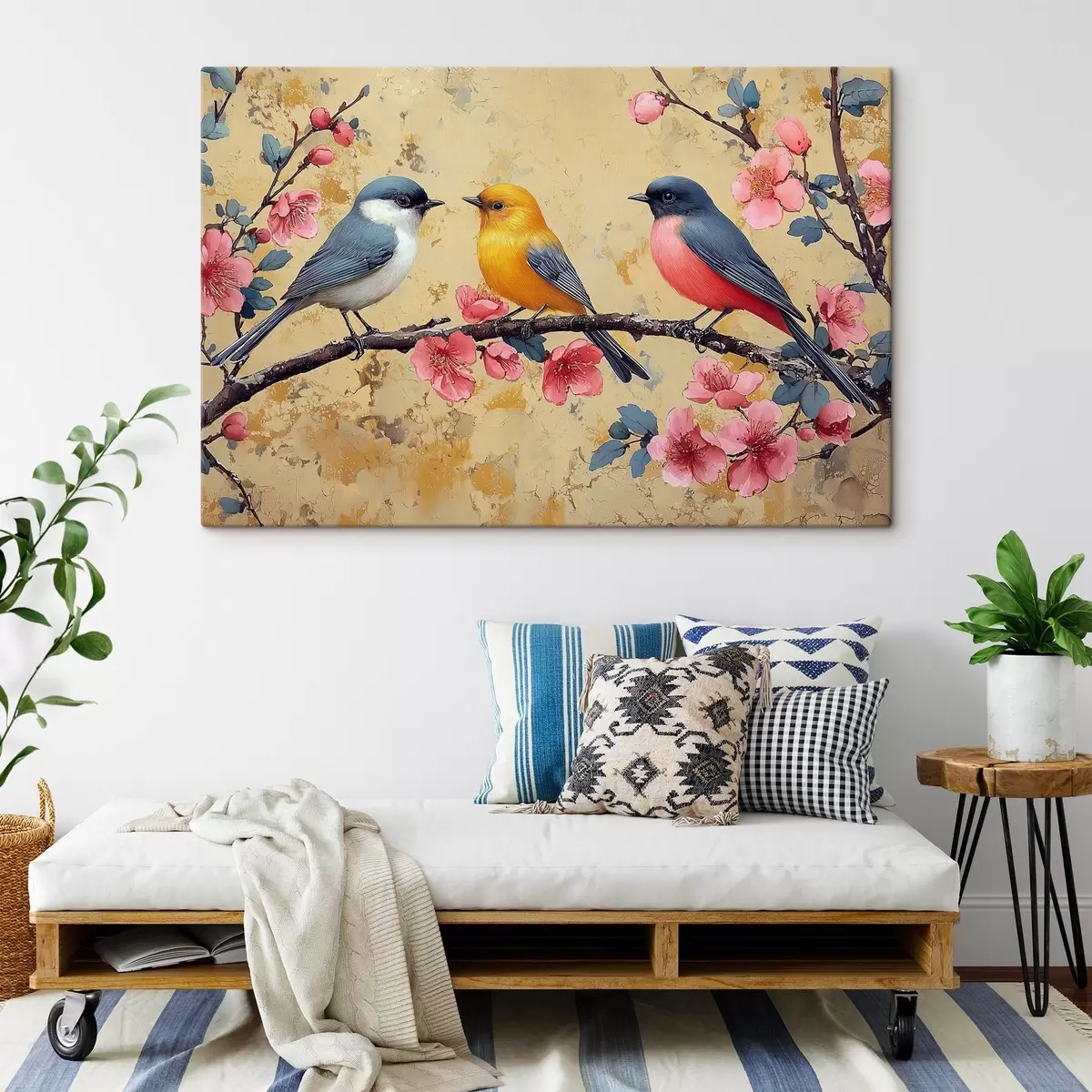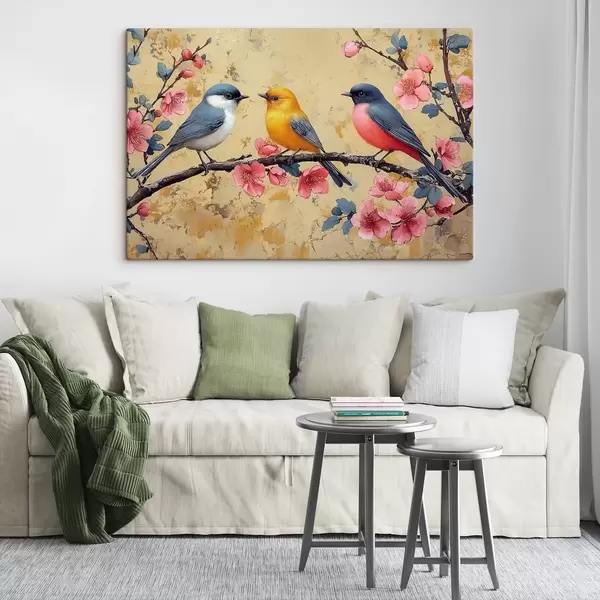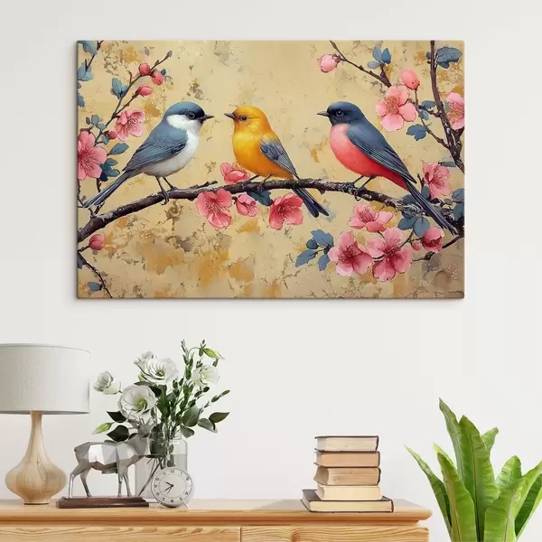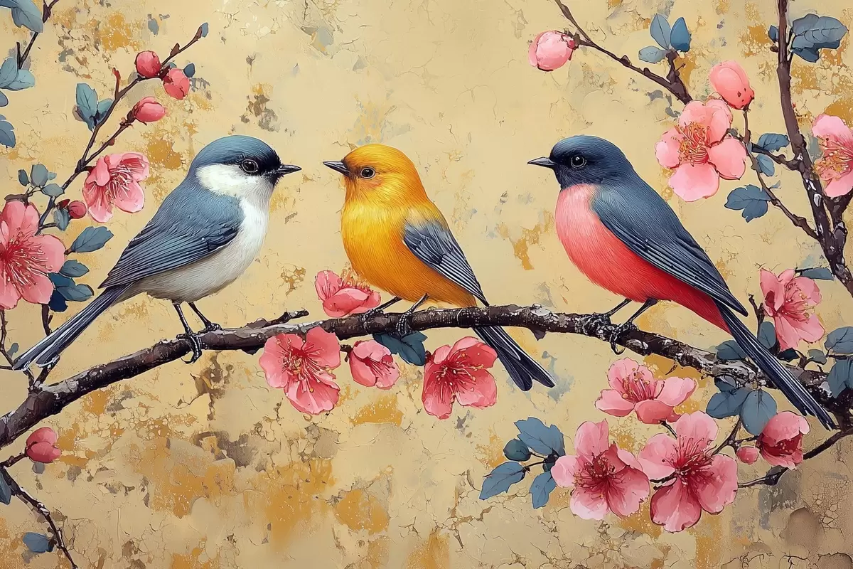 Paveikslas Aliejinės tapybos stiliaus žvirbliai ant sakuros šakos Nr s41835