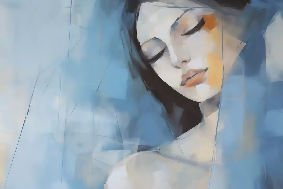 Paveikslas Mergina abstrakčiame mėlyname fone, imituojančiame tapybą Nr s41855