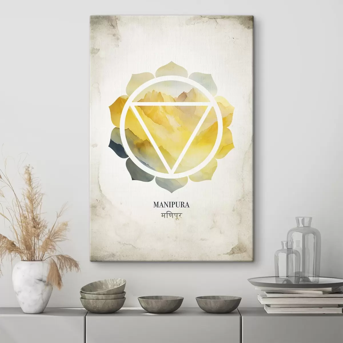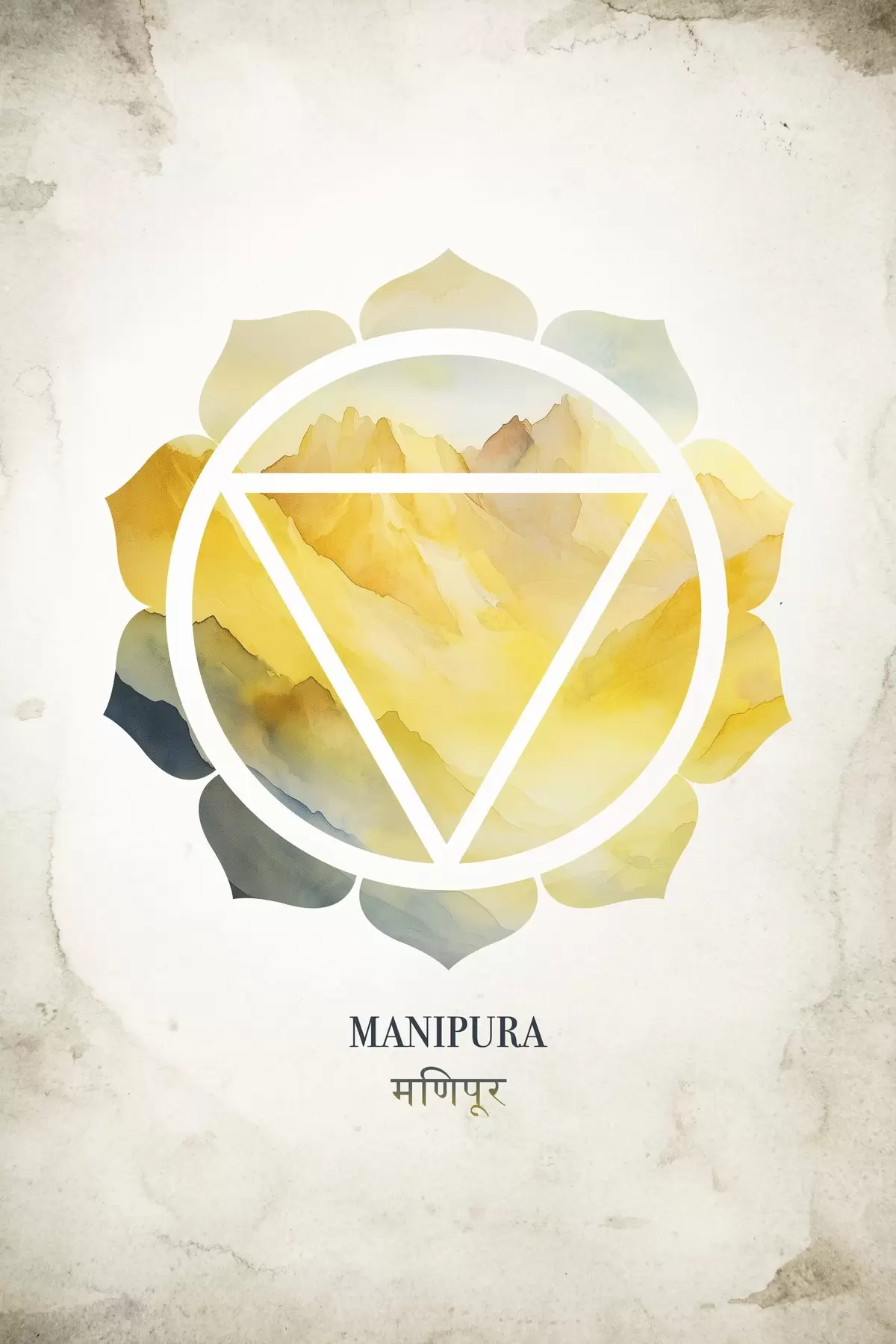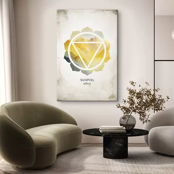 Paveikslas Manipura čakra, geltonoji čakra, ezoterika, meditacija, budizmas, akvarelės stiliaus kalnai Nr s41882