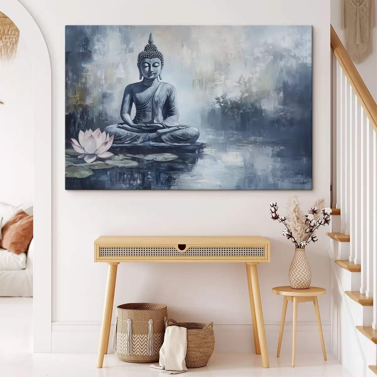Paveikslas Budos statula, meditacija, budizmas, lotoso gėlė, arilinis stilius, dvasinis Nr s41892