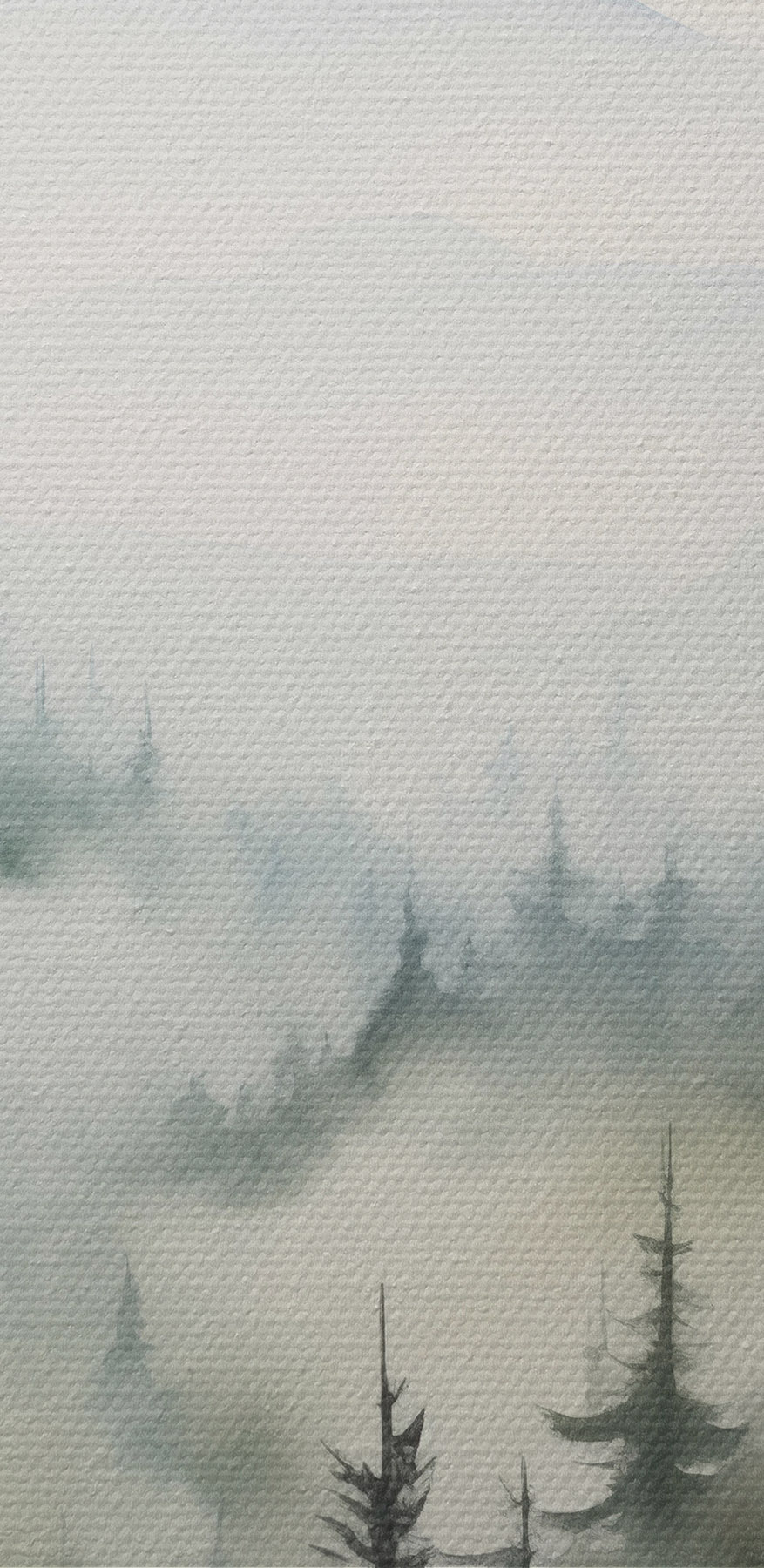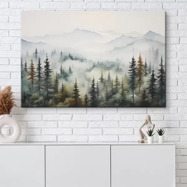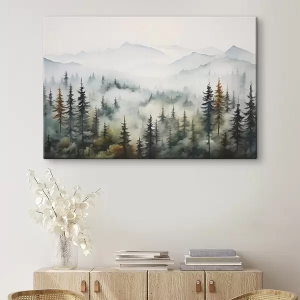 Paveikslas Akvarelės imitacijos miškas kalnų rūko fone Nr s41935