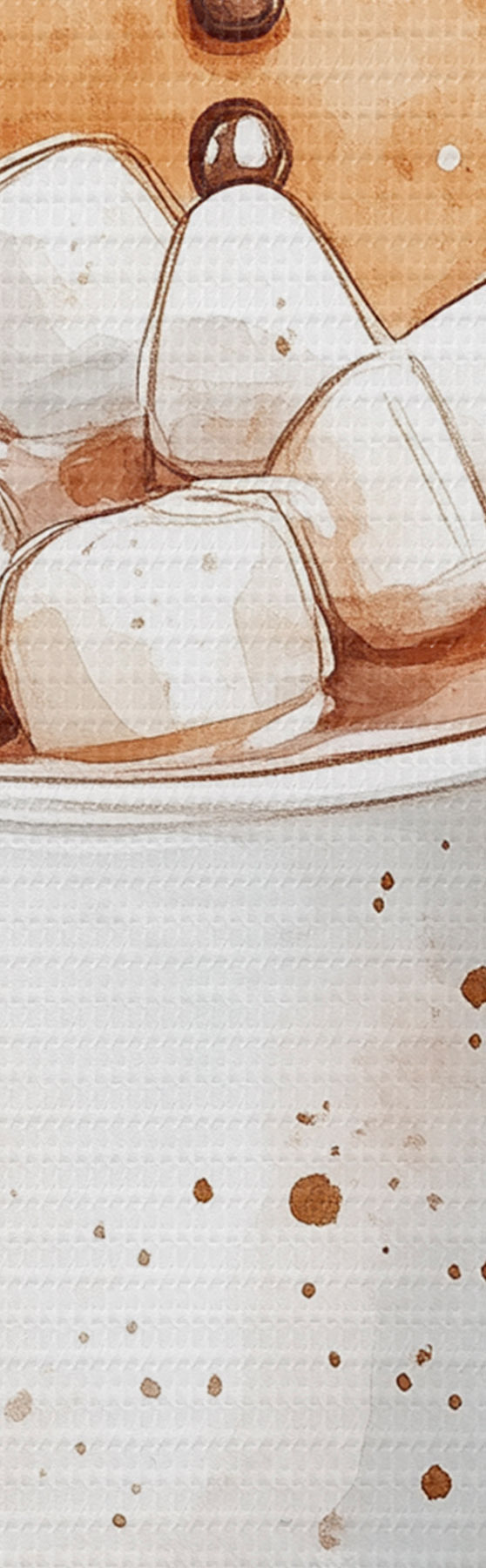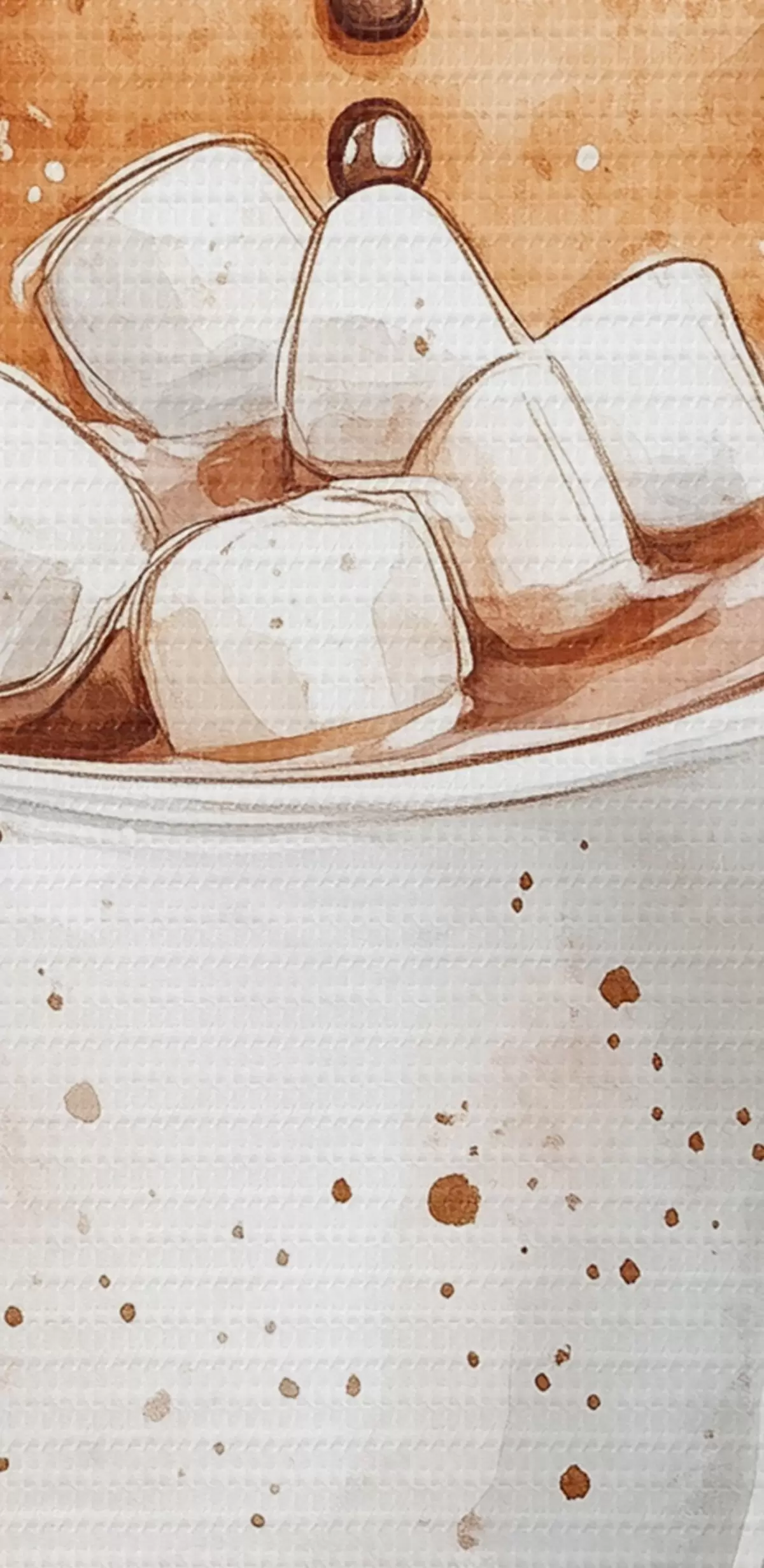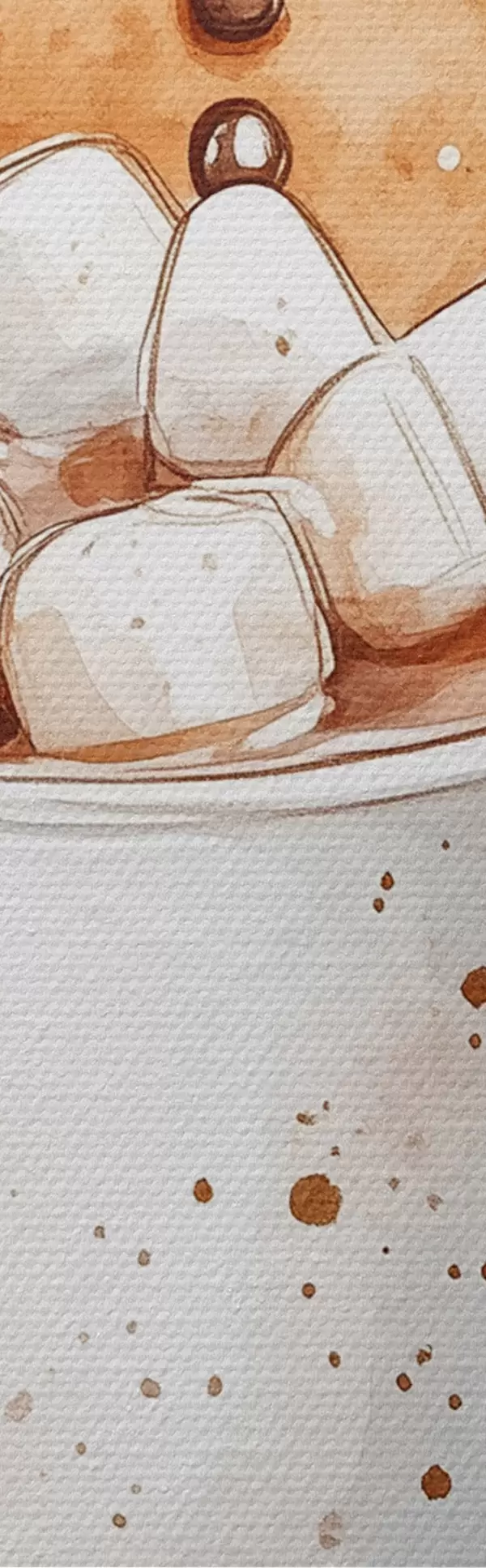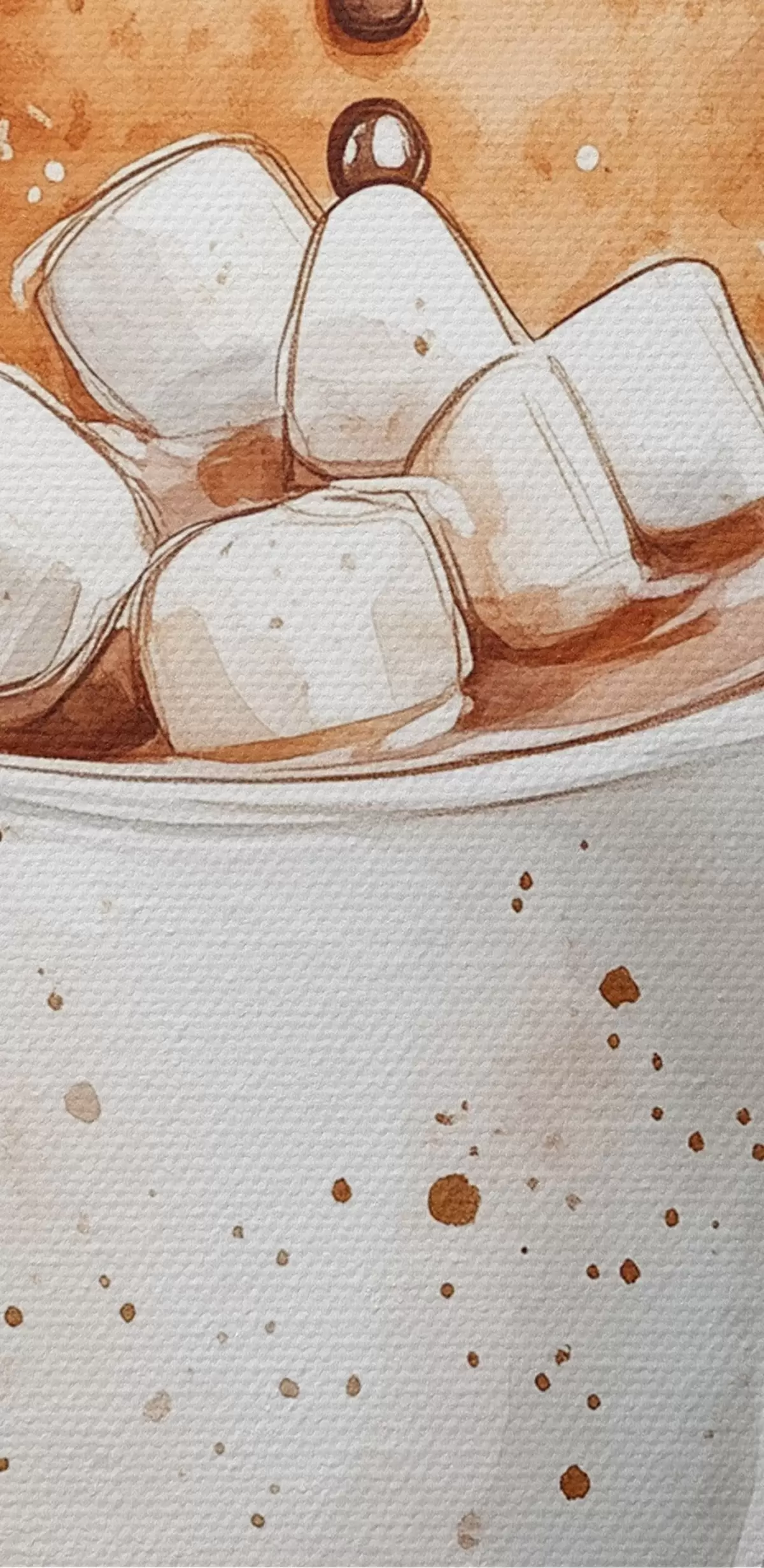 Paveikslas Meduoliai kavos puodelyje, cinamonas, zefyrai, akvarelės stilius, smėlio spalvos Nr s41948