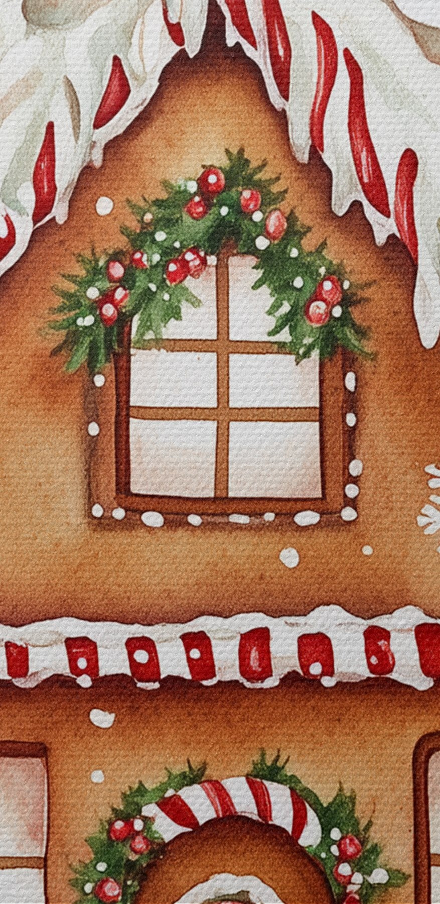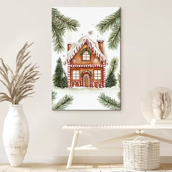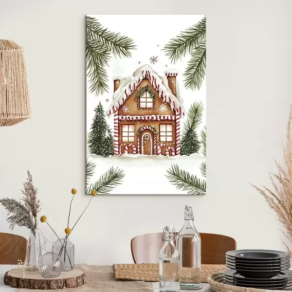 Paveikslas Imbierinis namelis, pušų šakos, skanus, šventinis, akvarelės stilius Nr s41950