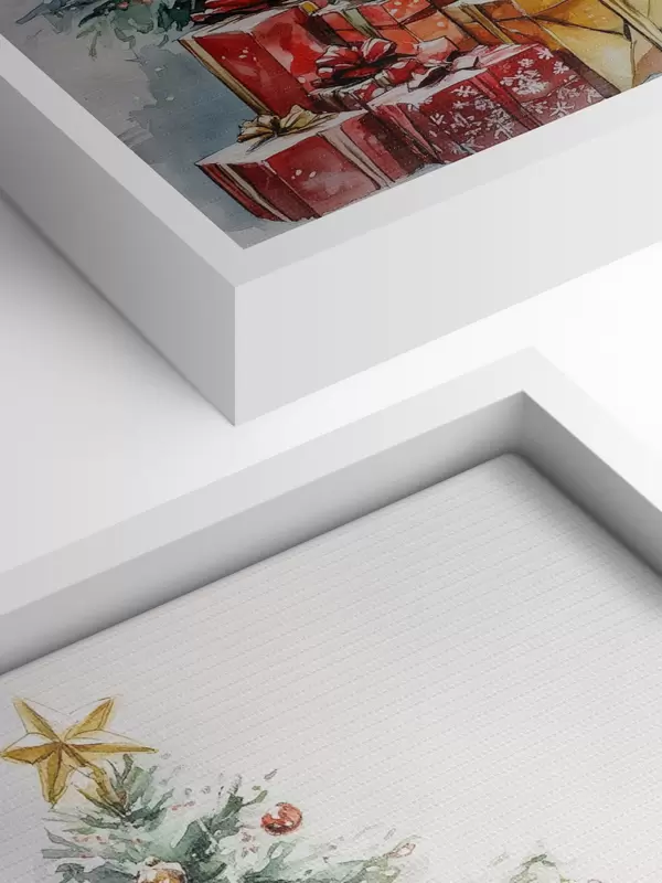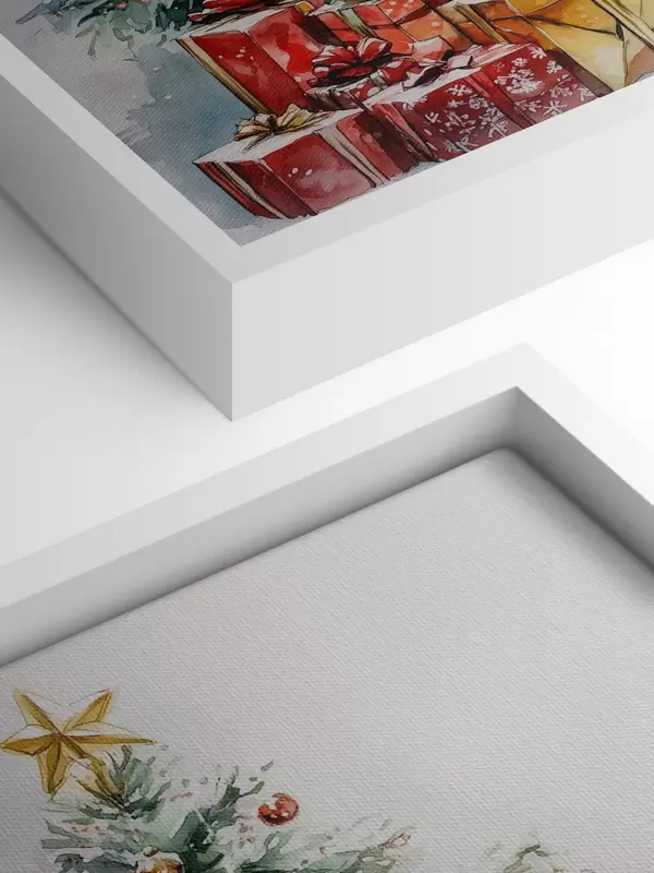 Paveikslas Šventinė Kalėdų eglutė su supakuotomis dovanomis, sniegas, akvarelės stilius Nr s41953