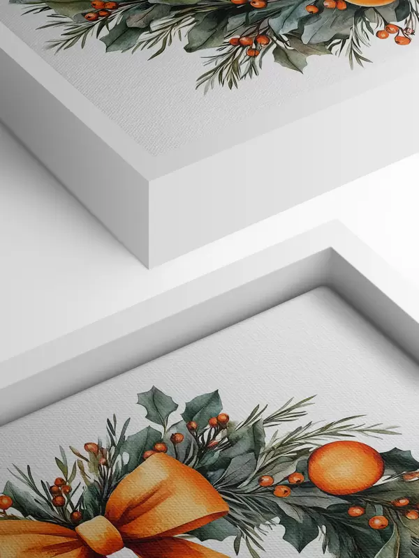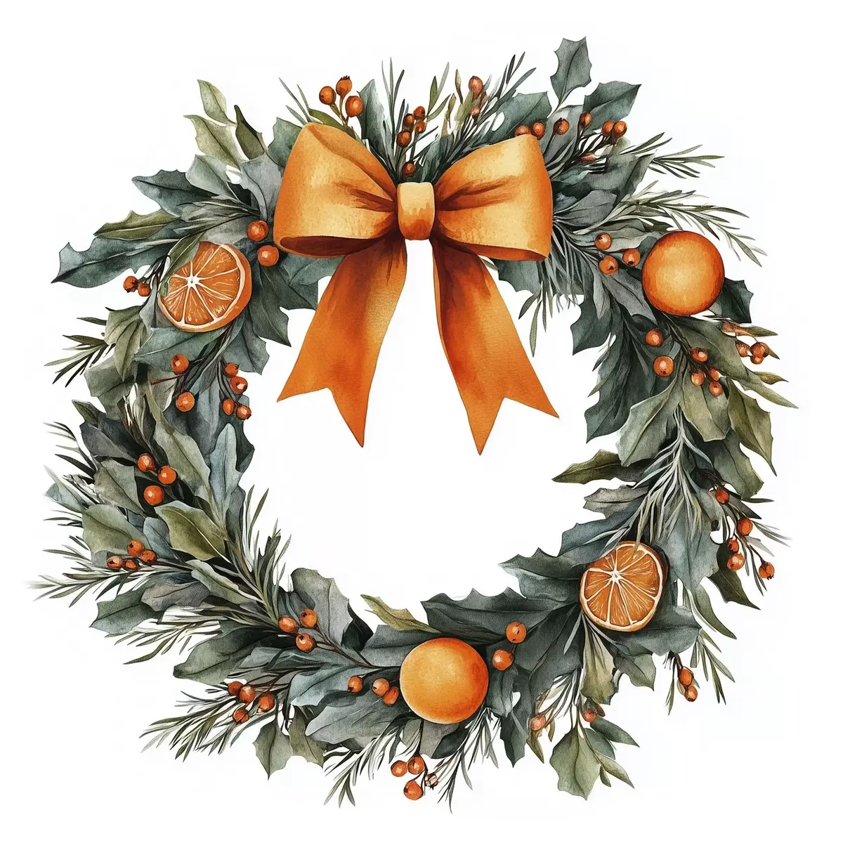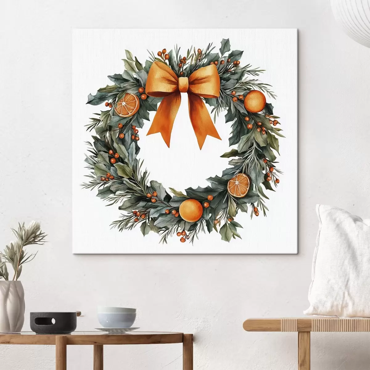 Paveikslas Gražus šventinis vainikas su pušimis, apelsinais, uogomis ir lanku Nr s41955