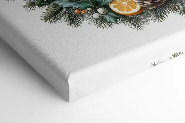 Paveikslas Kalėdinis pušų vainikas su lanku, medvilne, apelsinais, uogomis ir spurgomis Nr s41962