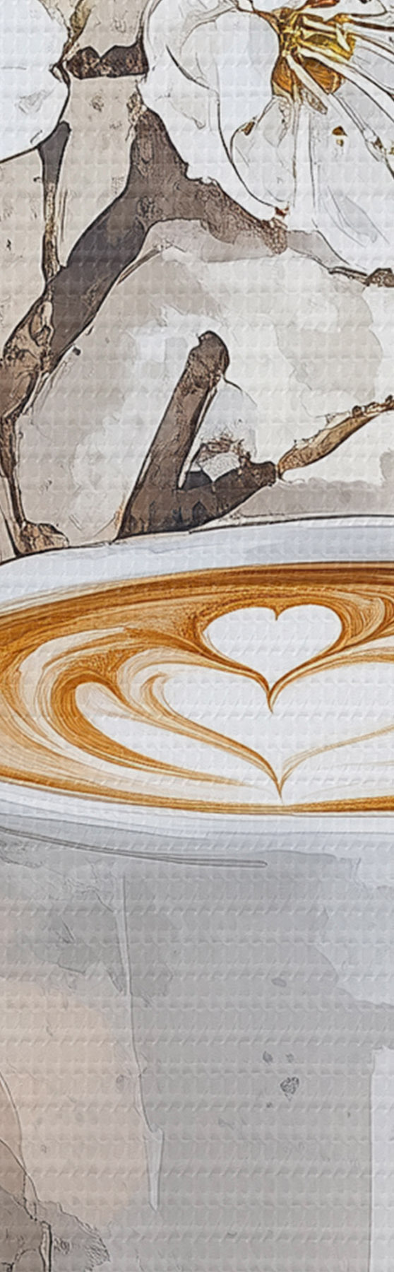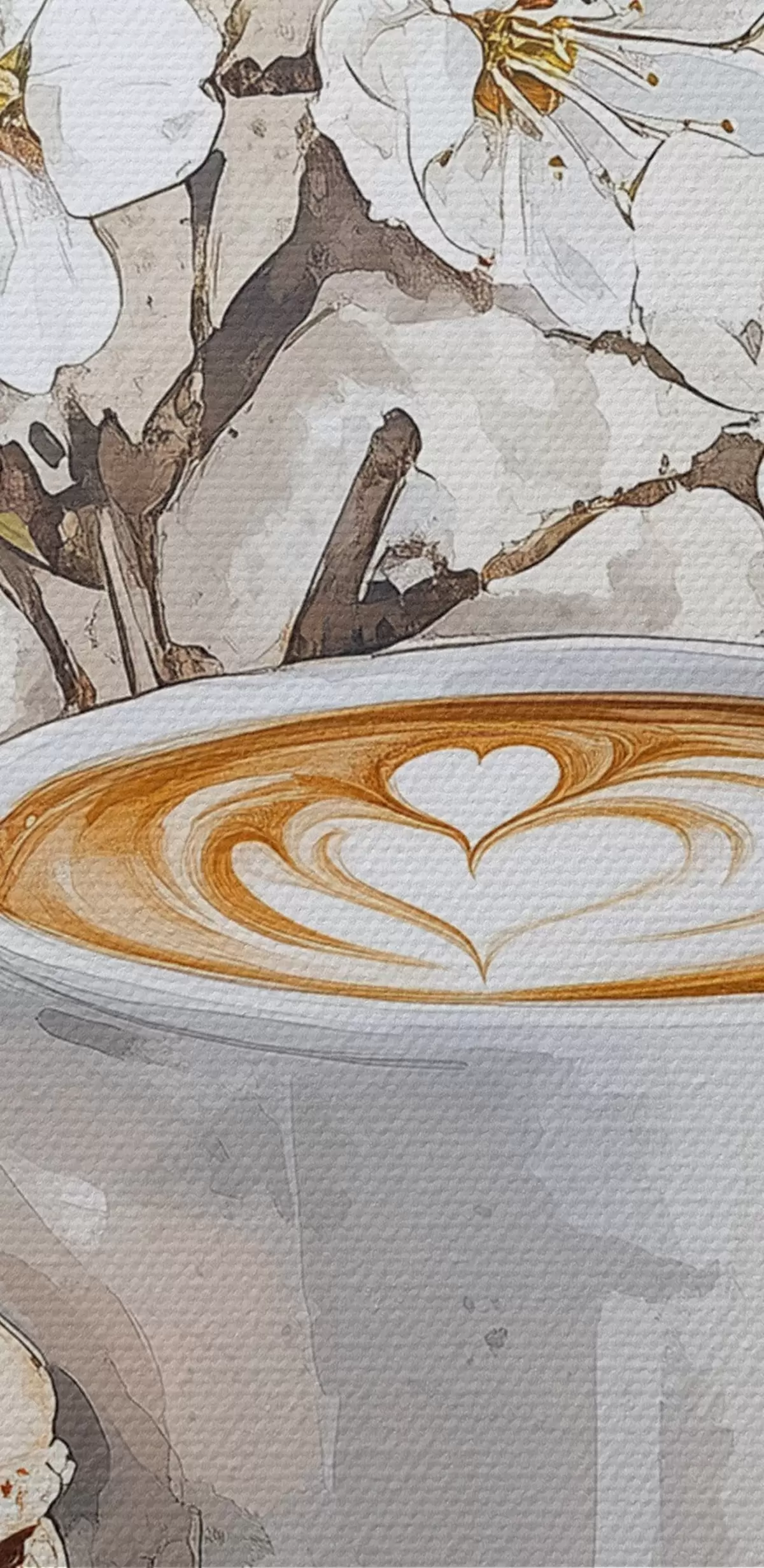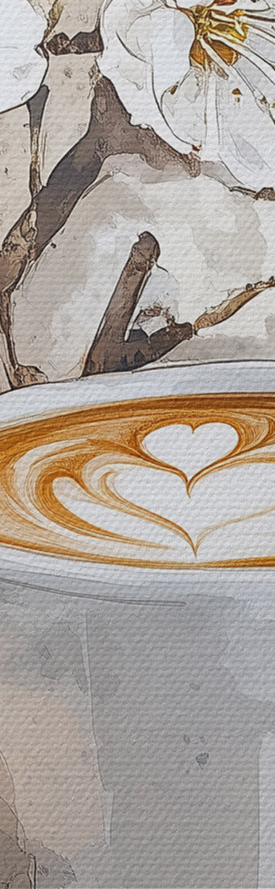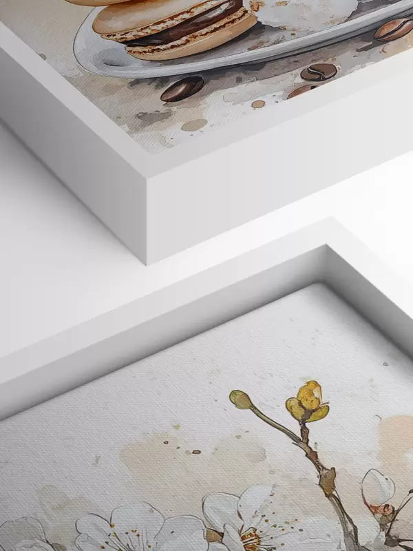 Paveikslas Gražus puodelis kavos, jazminų gėlės, makaronai, švelnios akvarelės spalvos Nr s41964