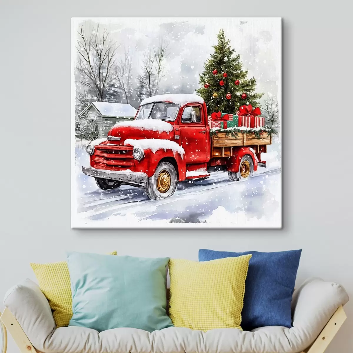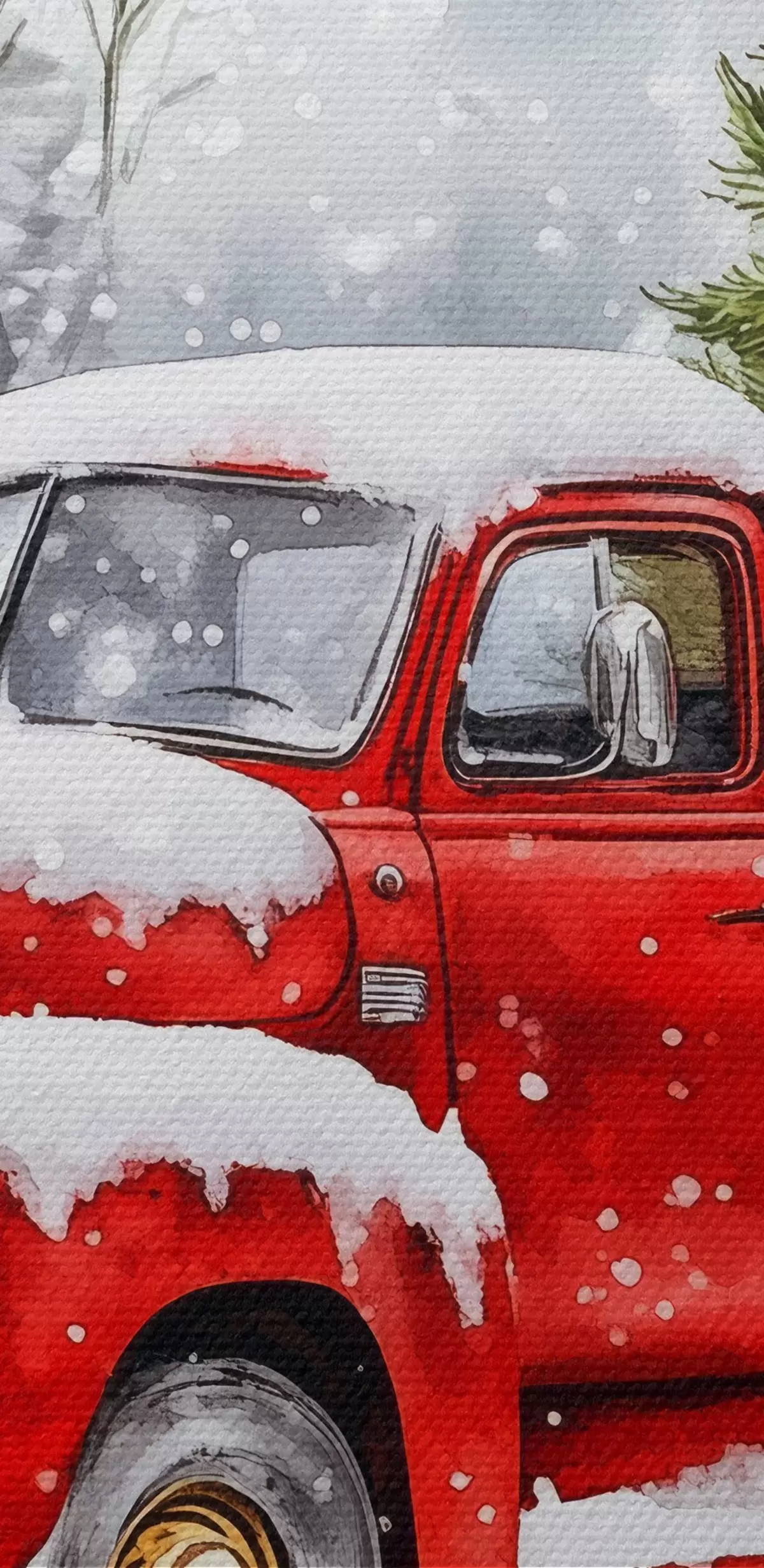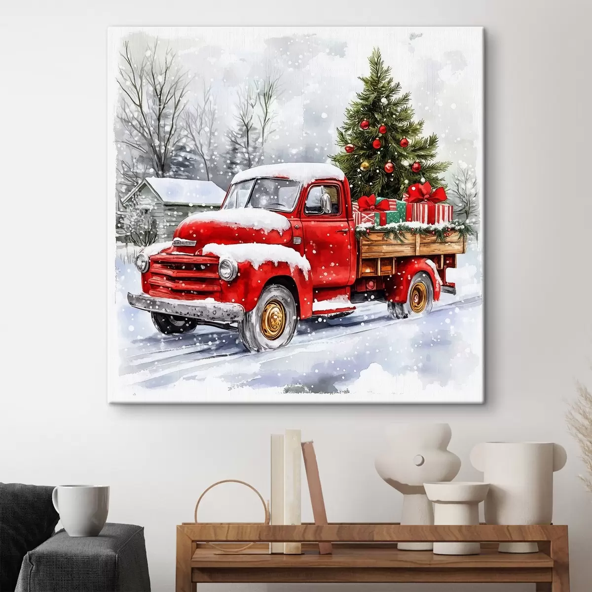 Paveikslas Kalėdų automobilis su eglute ir dovanomis snieguotu oru Nr s41968