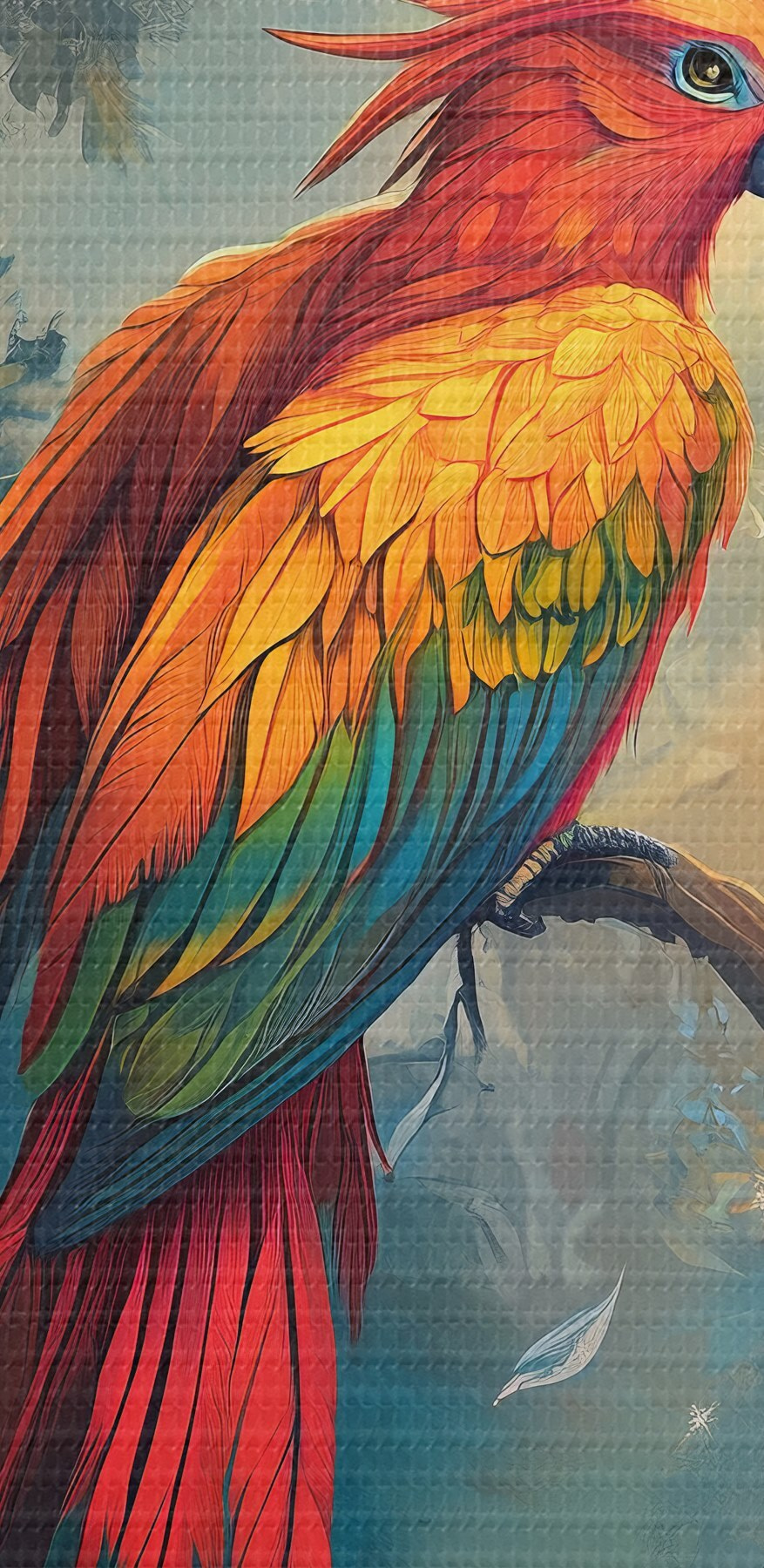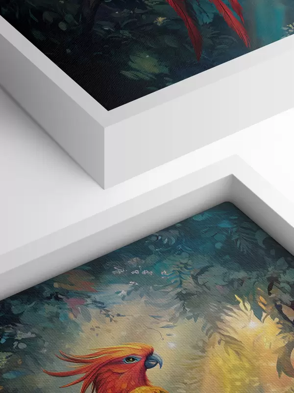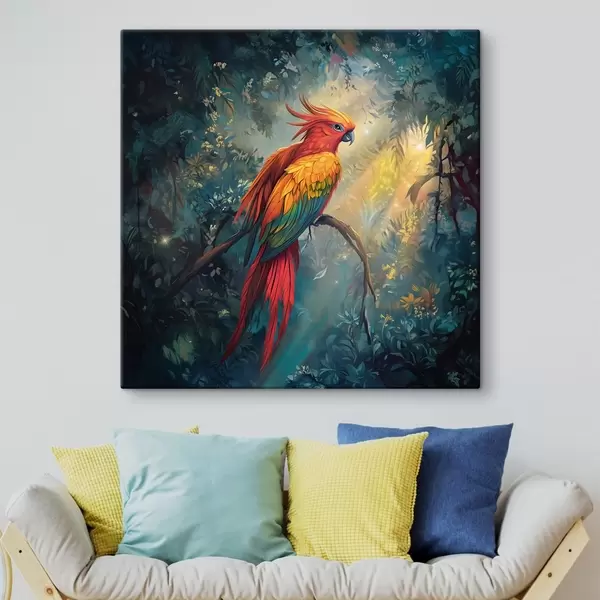 Paveikslas Spalvinga papūga džiunglėse su skvarbiais šviesos spinduliais Nr s41970