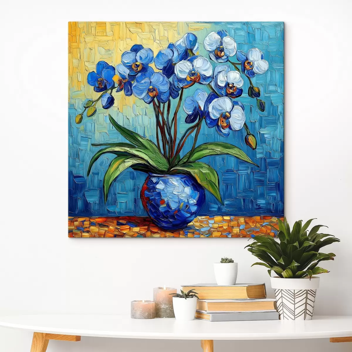 Paveikslas Mėlyna orchidėja Van Gogo stiliaus vazoje, paveikslo imitacija Nr s41982