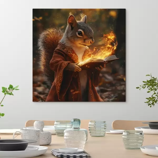 Paveikslas Mistinė voverė burtininkė, apsirengusi burtininko drabužiu ir rankose laikanti stebuklingą veikalą Nr s41983