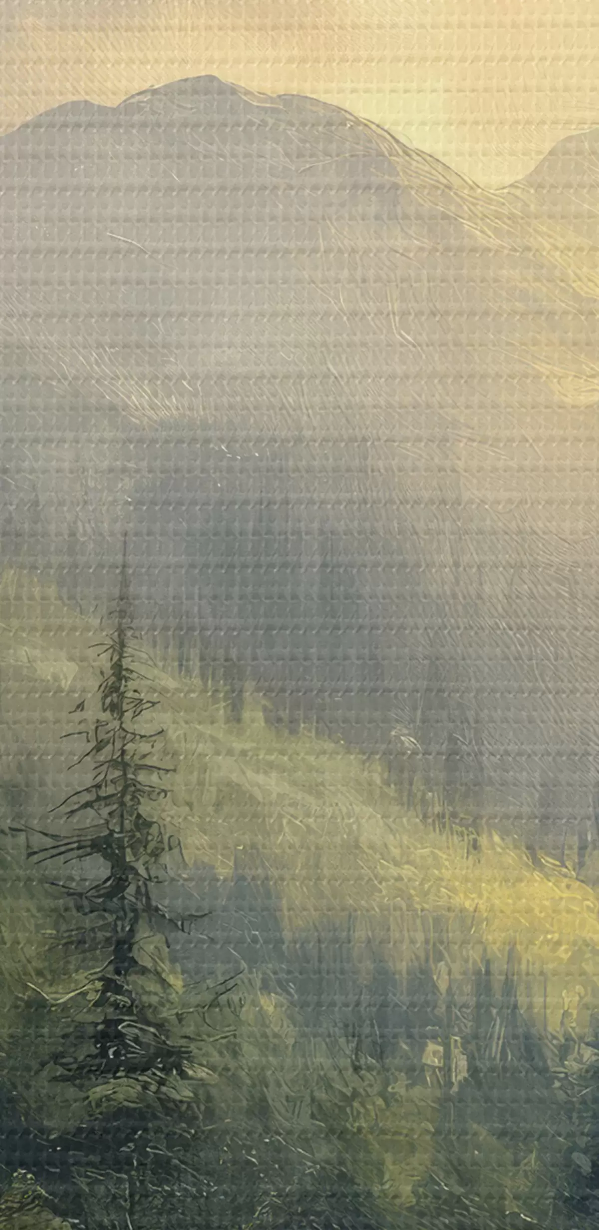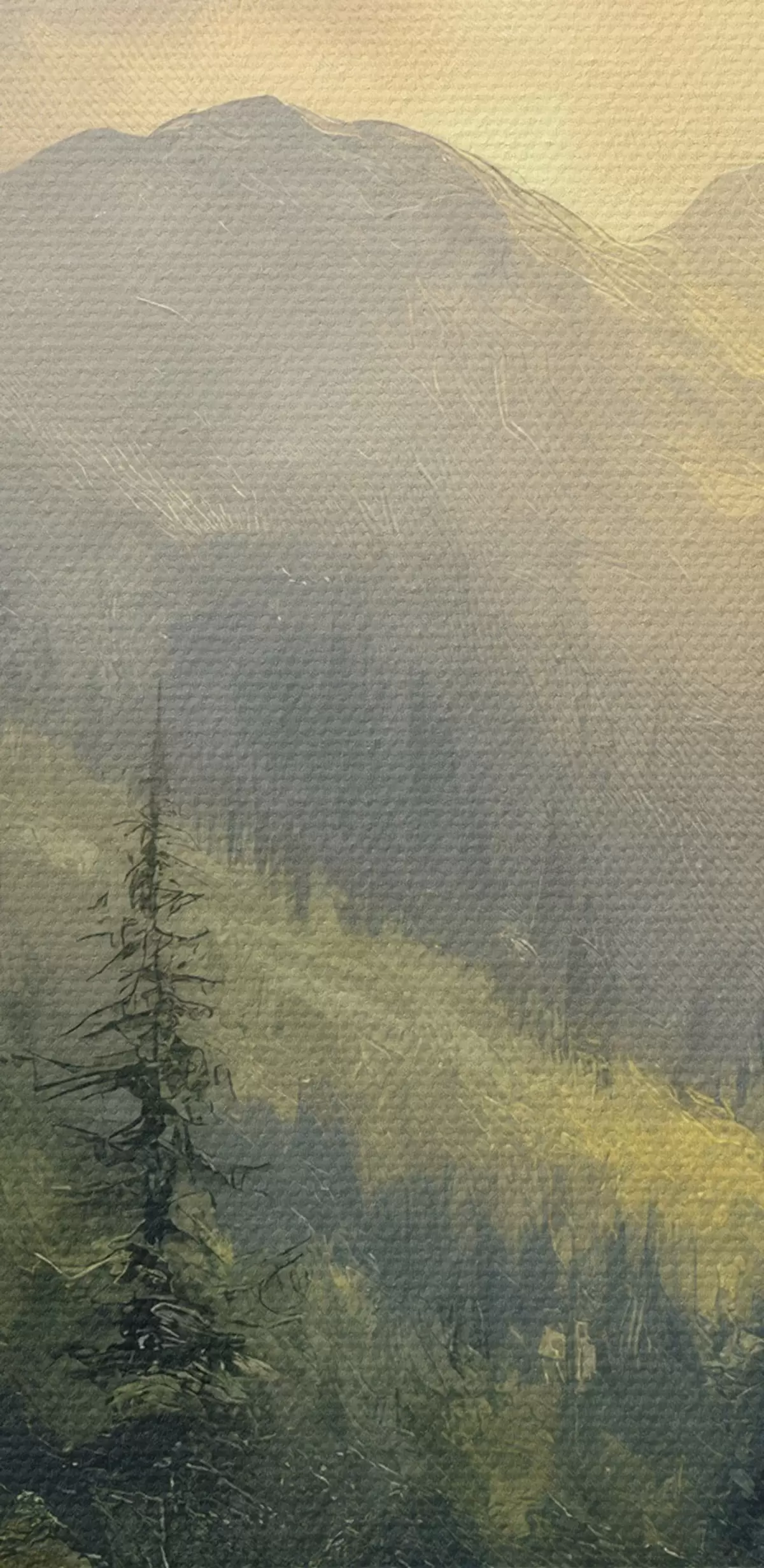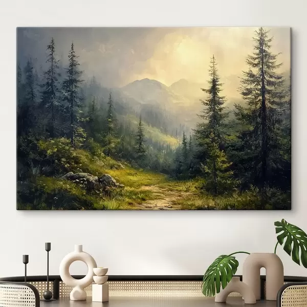 Paveikslas kalnai rūke ir medžiai Nr s42019
