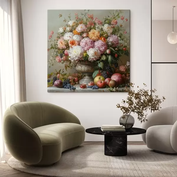 Paveikslas gėlės vazoje ir vaisiai Nr s42021