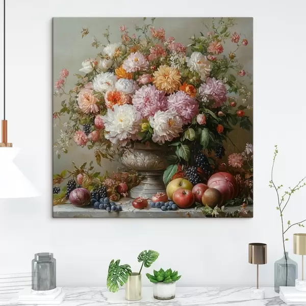 Paveikslas gėlės vazoje ir vaisiai Nr s42021