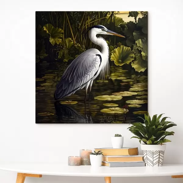 Paveikslas Gandras vandenyje pelkės fone Nr s42039