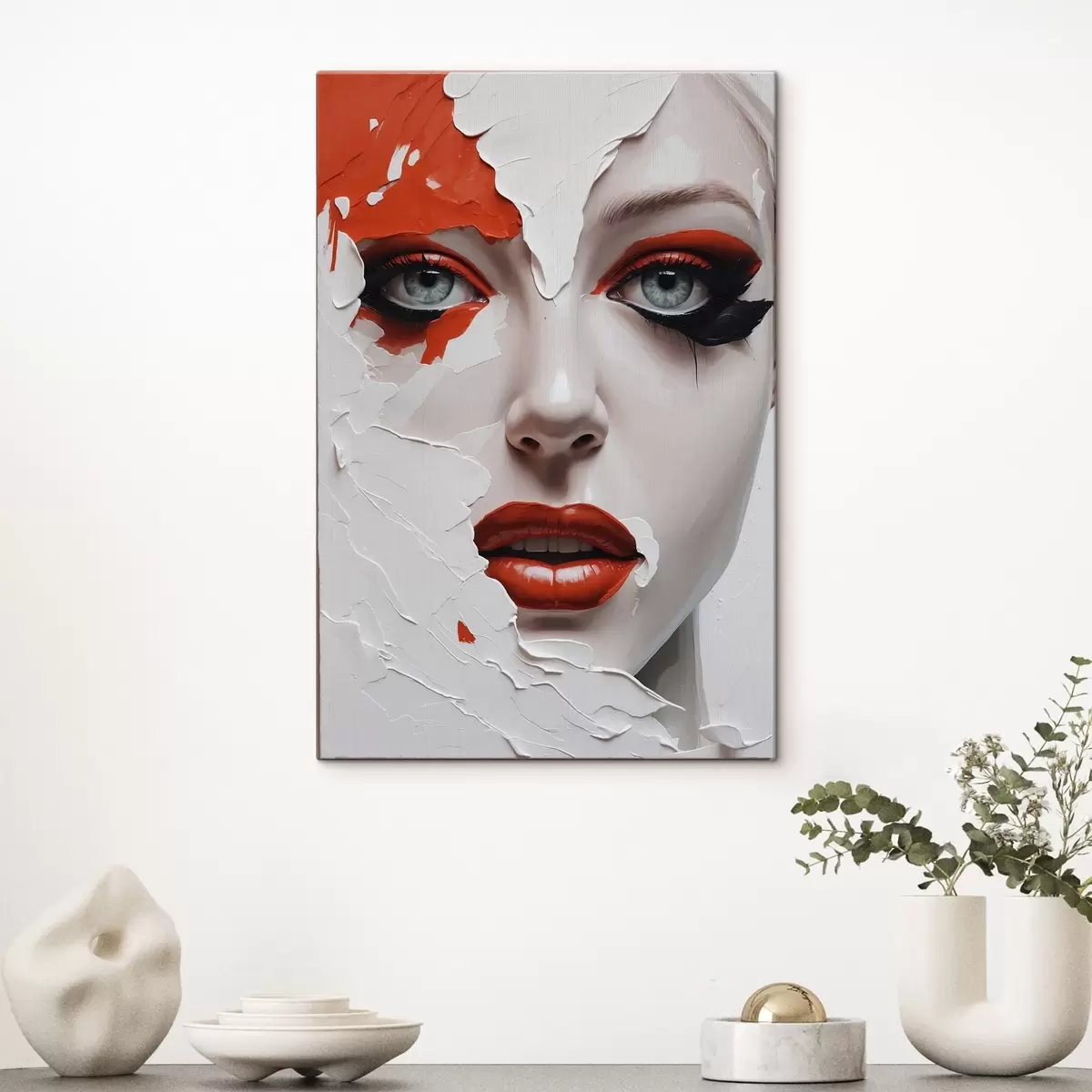 Paveikslas Mergaitės veidas baltais ir oranžiniais dažais Nr s42092