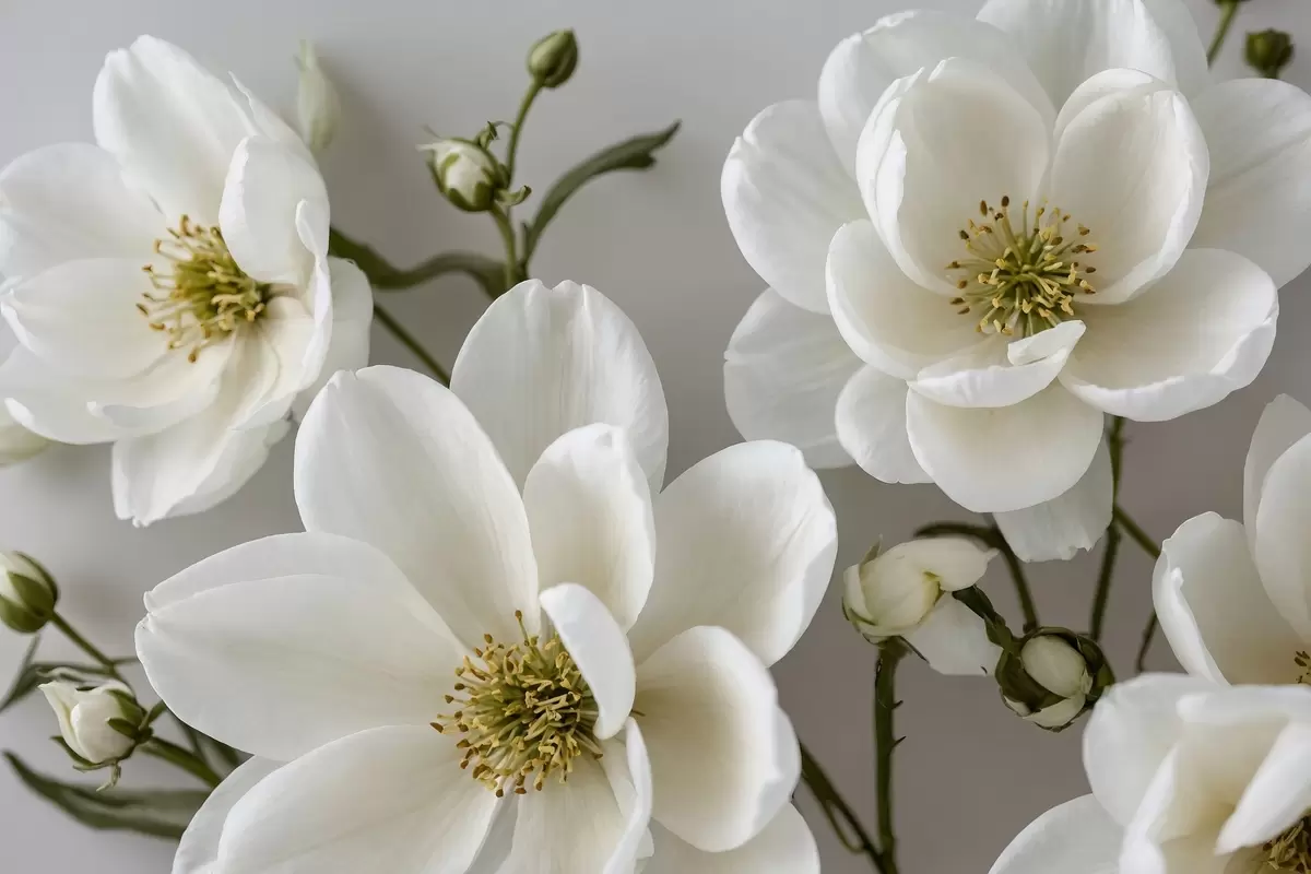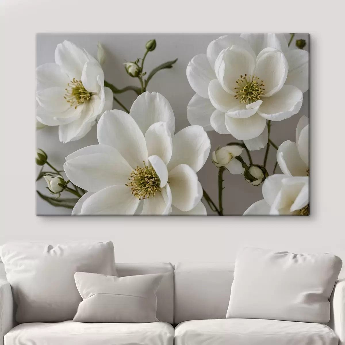 Paveikslas Baltos gėlės ir stiebai šviesiame fone Nr s42097