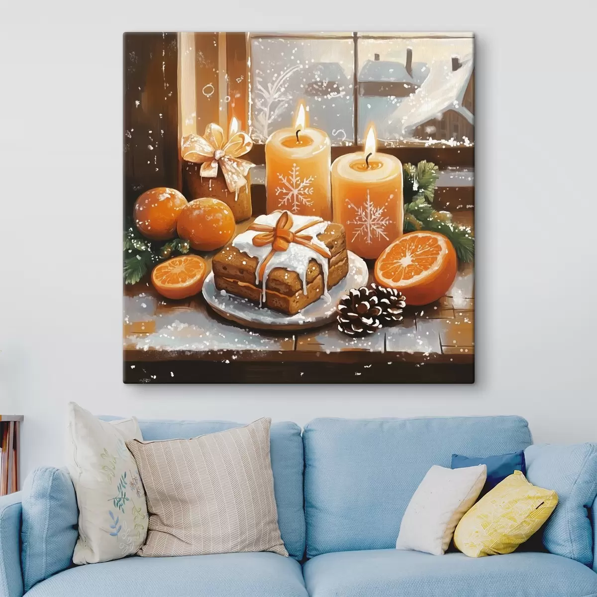 Paveikslas Kalėdų pyragas, mandarinai, žvakės Nr s42101