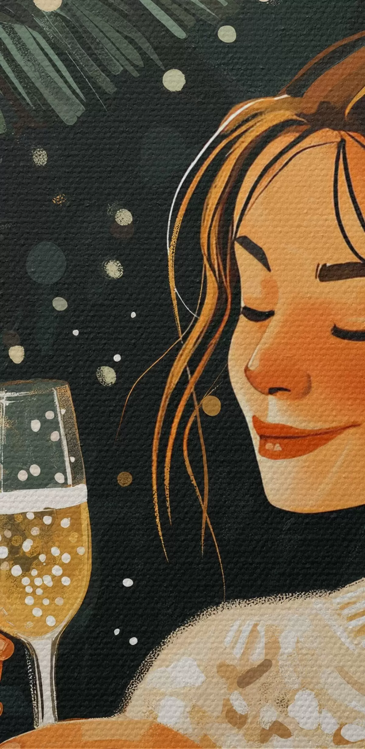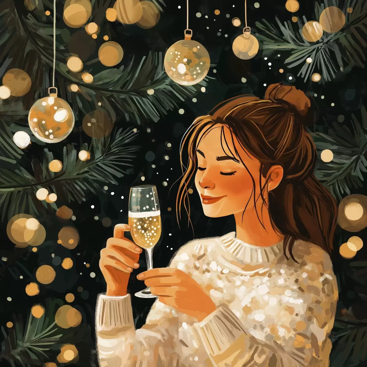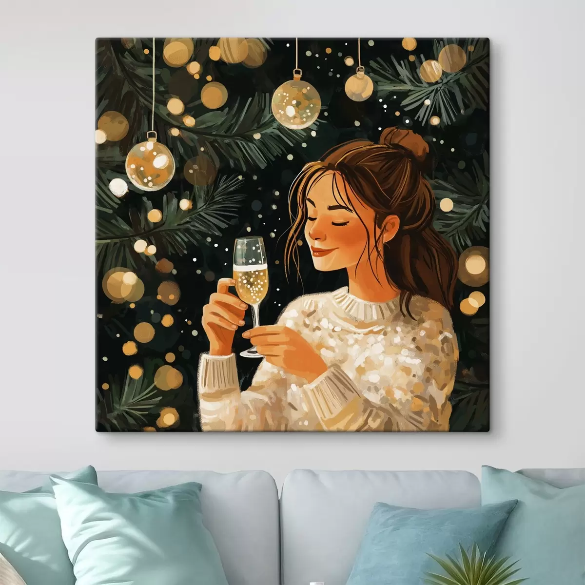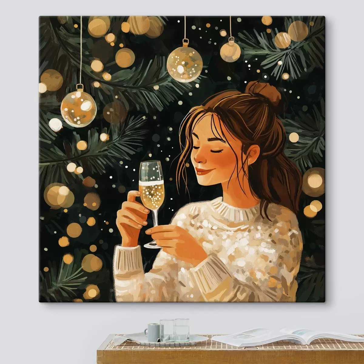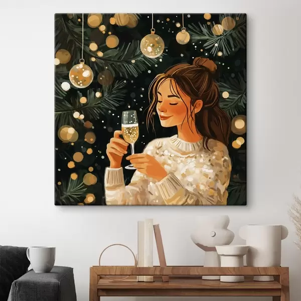 Paveikslas Mergina su šampano taure Naujųjų metų išvakarėse Nr s42102