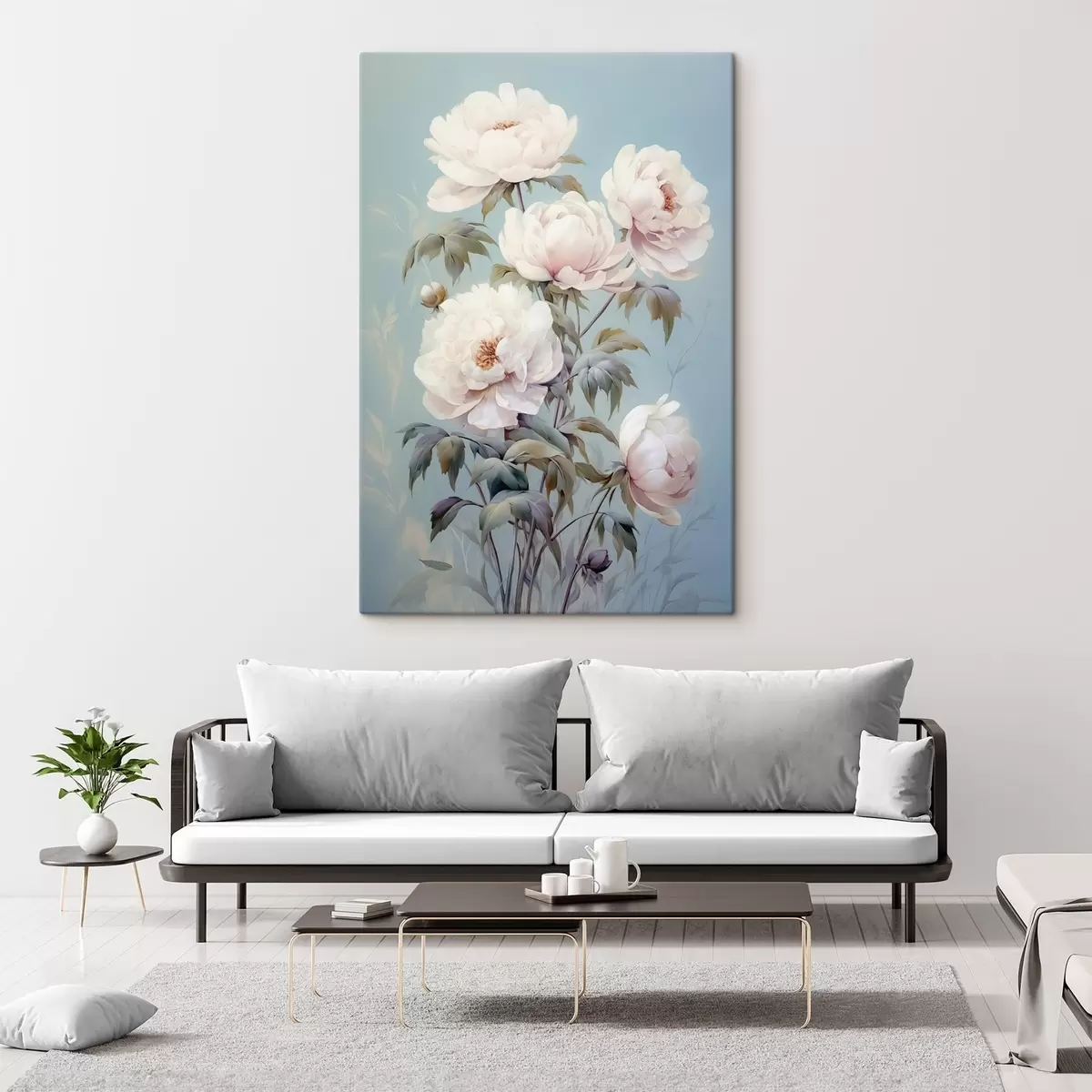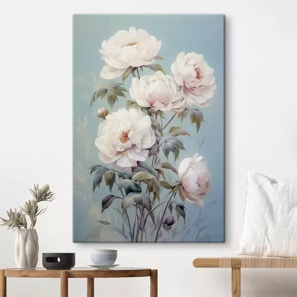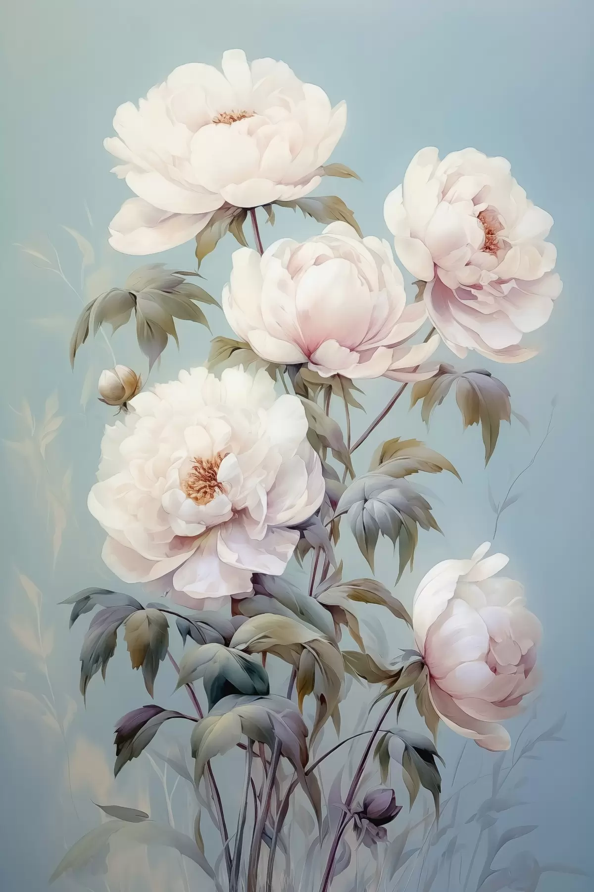 Paveikslas Bijūnai pastelinės mėlynos spalvos fone vintage stiliaus Nr s42123