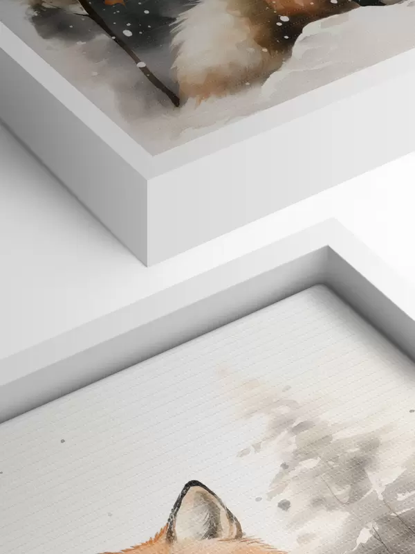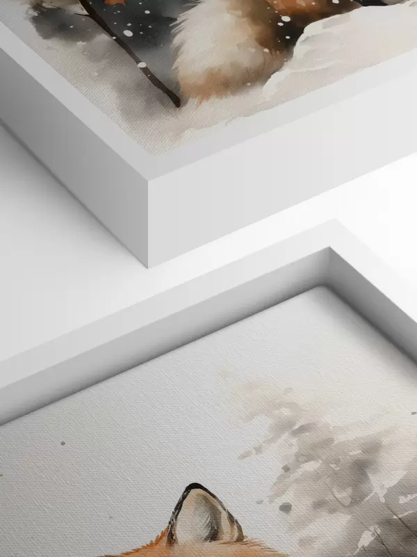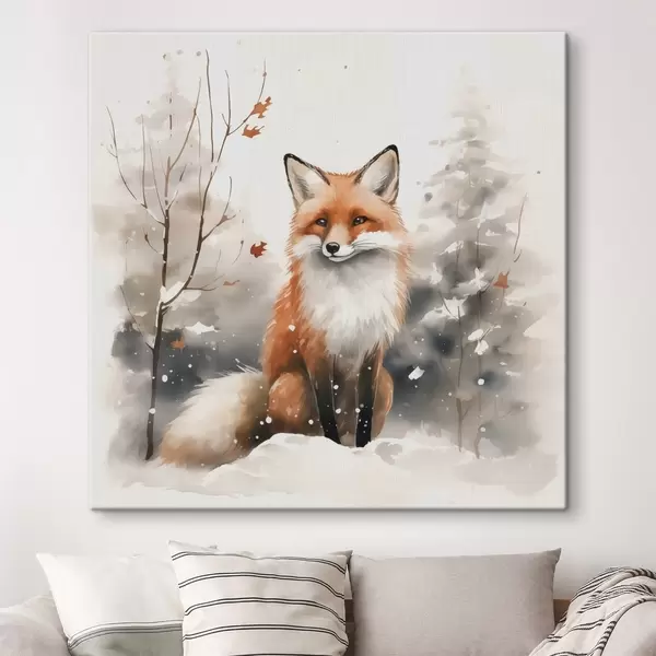 Paveikslas Lapės jauniklis snieguotame miške, akvarelės imitacija Nr s42146